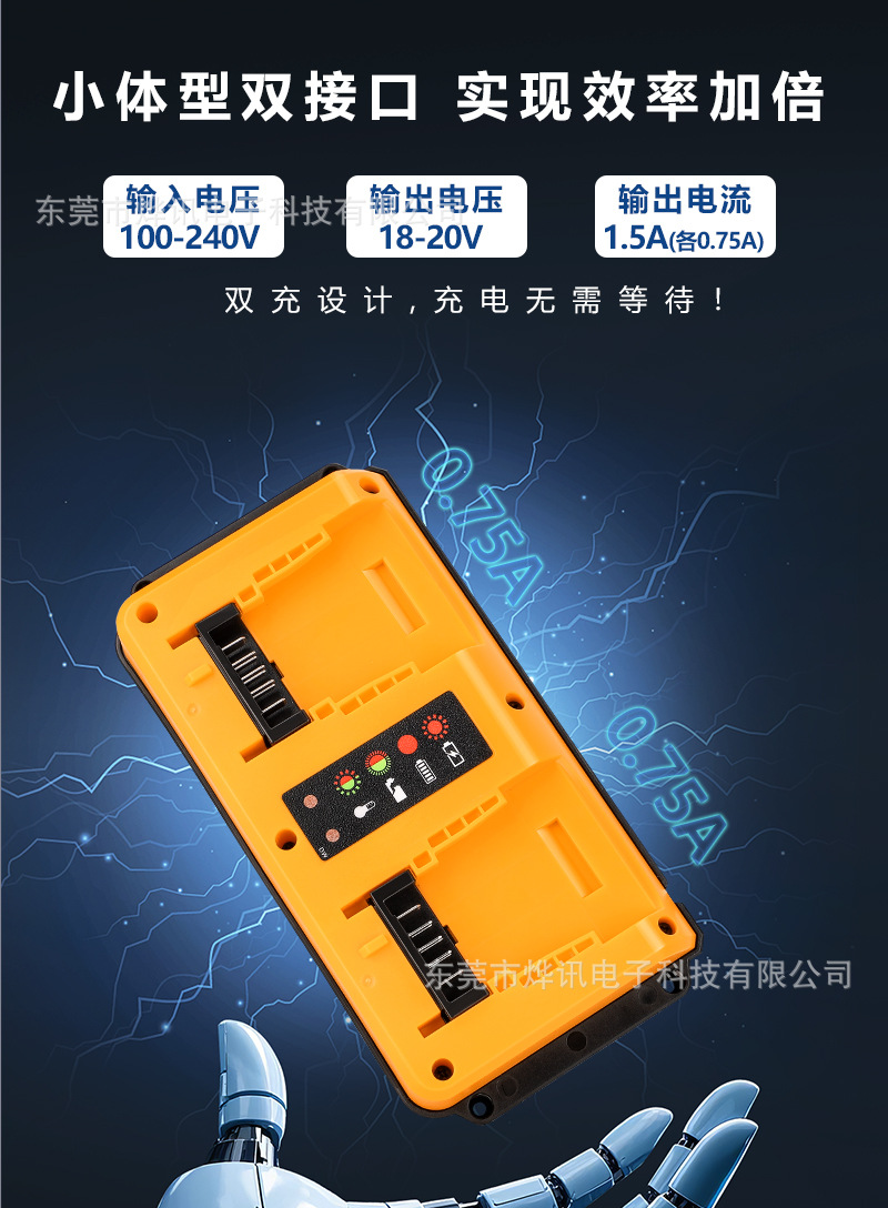 LUB 小型デュアル充電器 CH07 急速充電器は、LUB 電動工具 18-20V ニッケル電池に適しています。