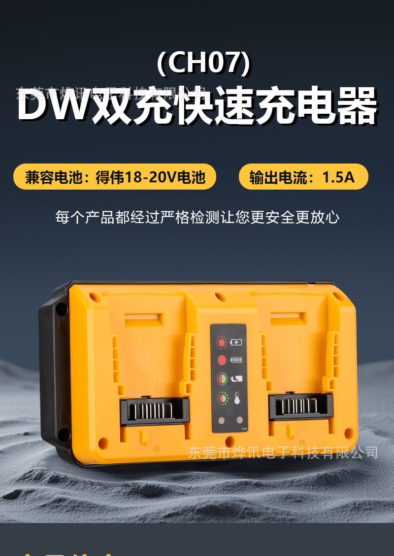 DW 小型デュアル充電器 CH07 急速充電器は、Dewalt 電動工具 14.4-18V リチウム電池に適しています。