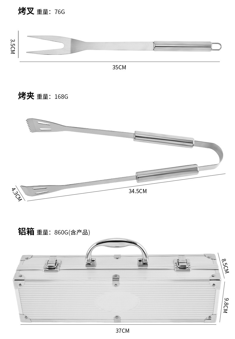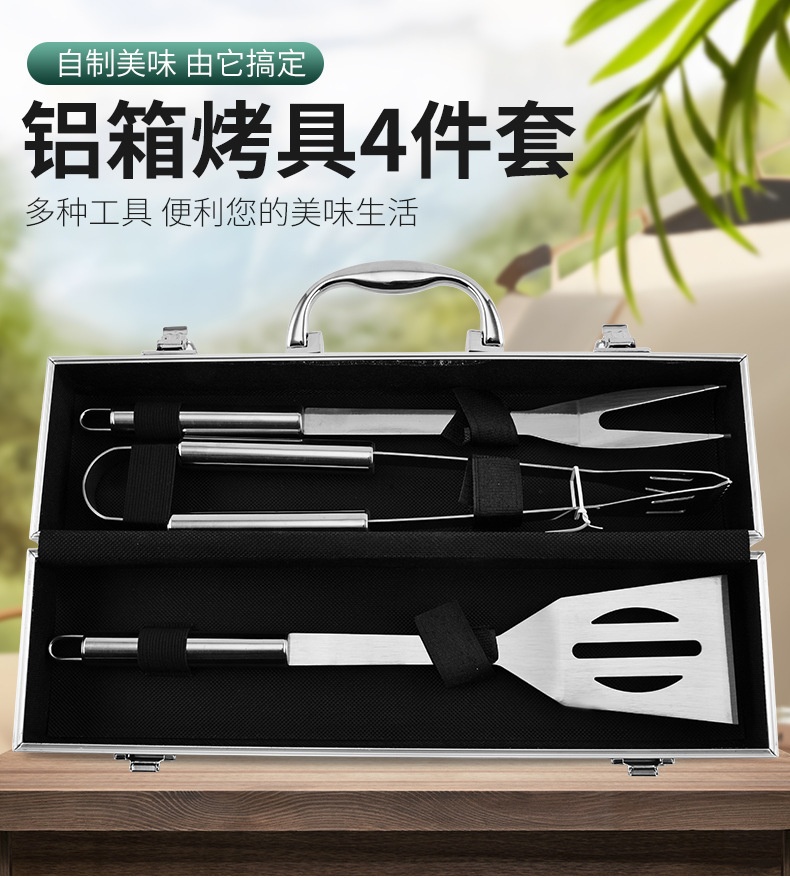 ステンレスアルミボックス入りバーベキューセット、屋外BBQ多機能キャンプ用串焼きポータブルツールセット