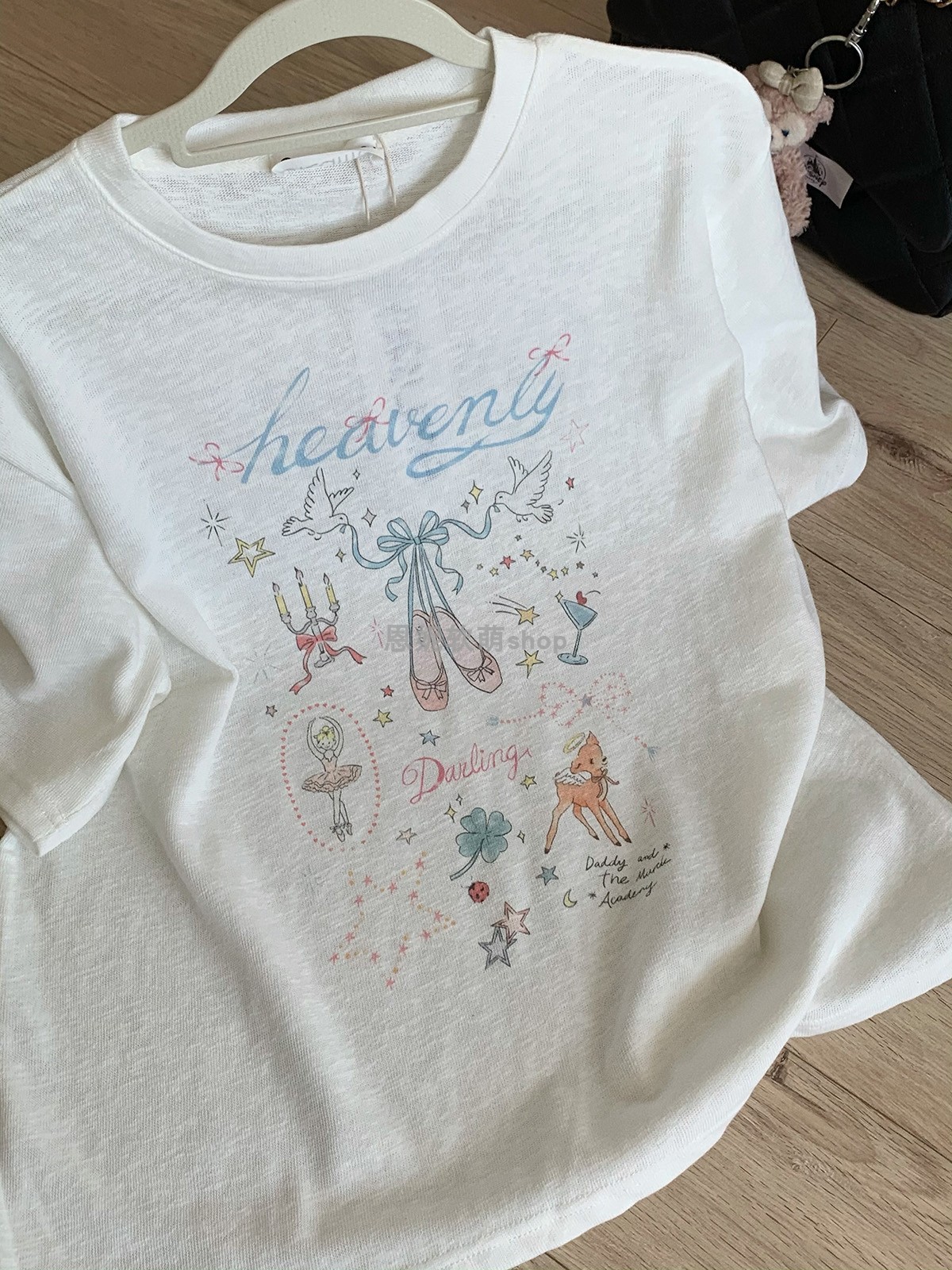 バレエワルツ~甘い女の子かわいいプリント半袖Tシャツレディース夏ゆったりカジュアル年齢軽減ラウンドネックトップス