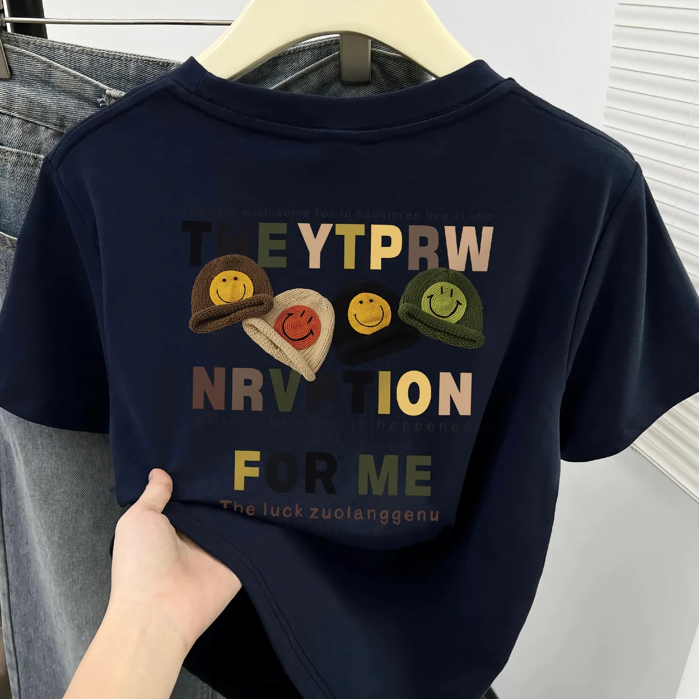ネイビーブルー半袖 Tシャツ女性のための 2025 新しい夏ヨーロッパ人気の小さなシャツアメリカンレトロ漫画プリントトップ