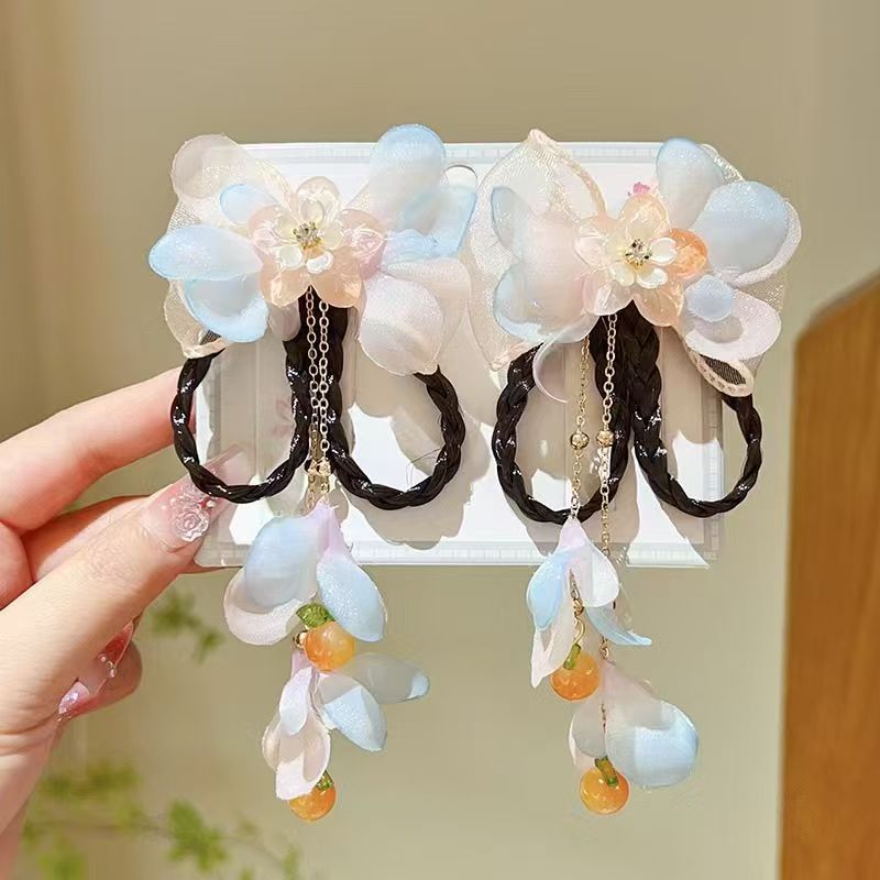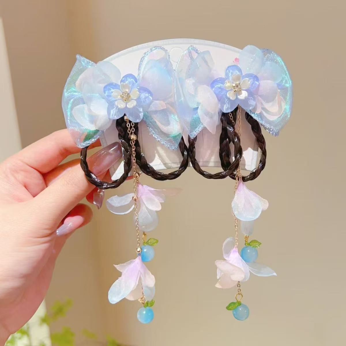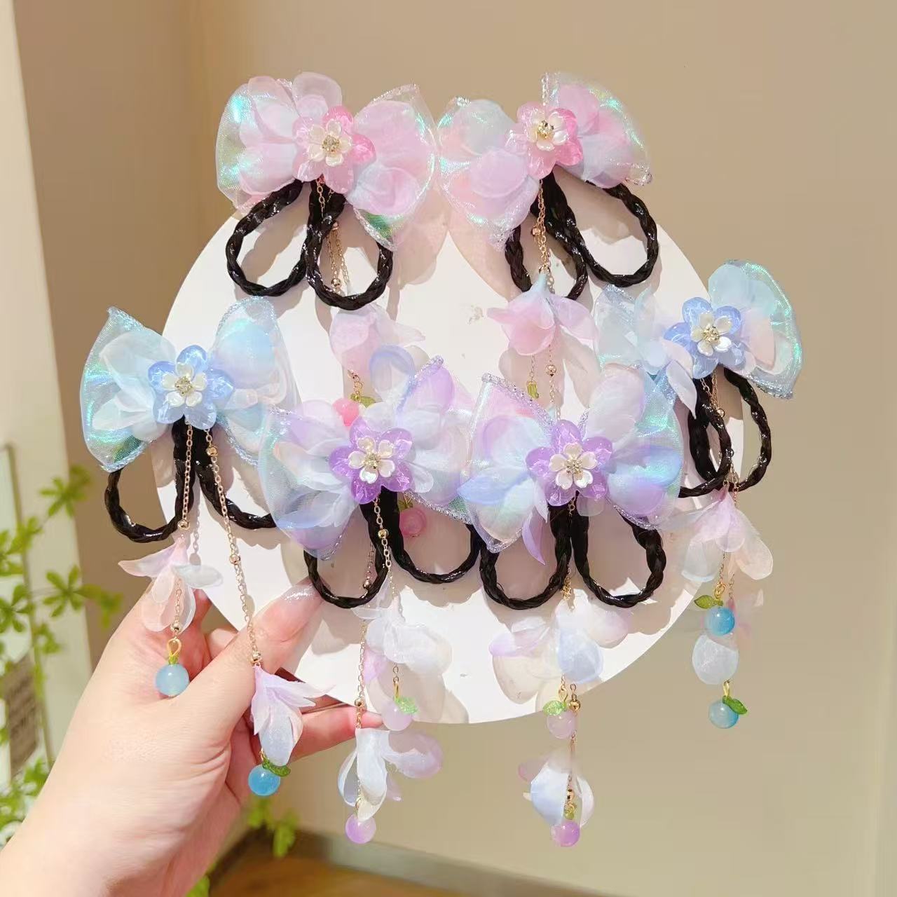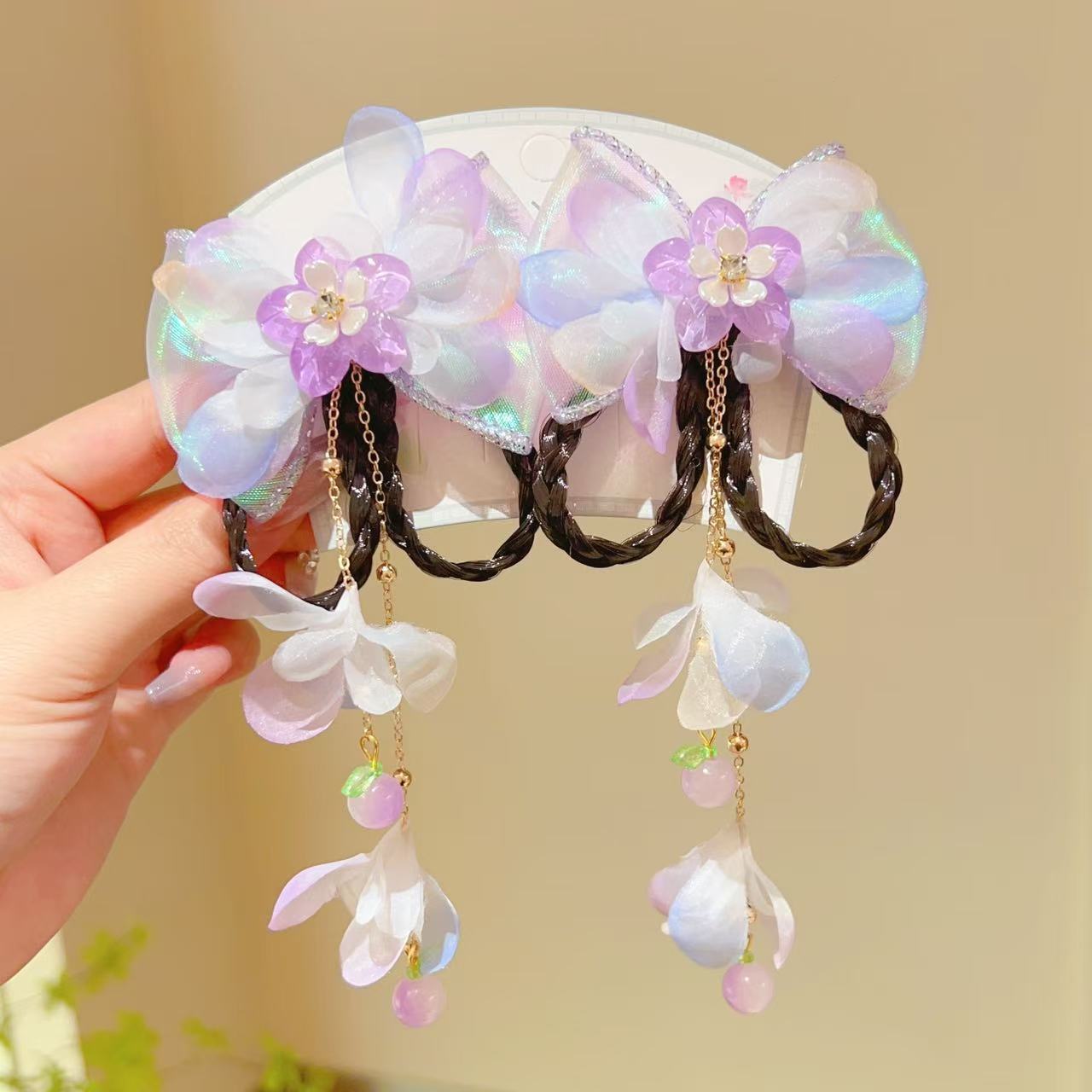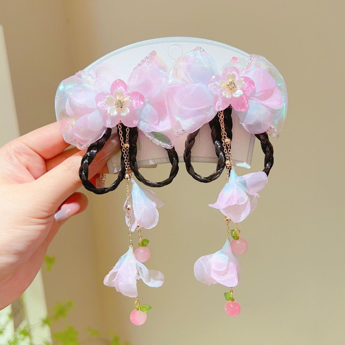漢服子供用ヘアアクセサリー、古代衣装、超仙風、新作ウィッグ、編み込みヘアピン、新作中国風女の子用ヘアピン、古代風タッセルヘアフラワー