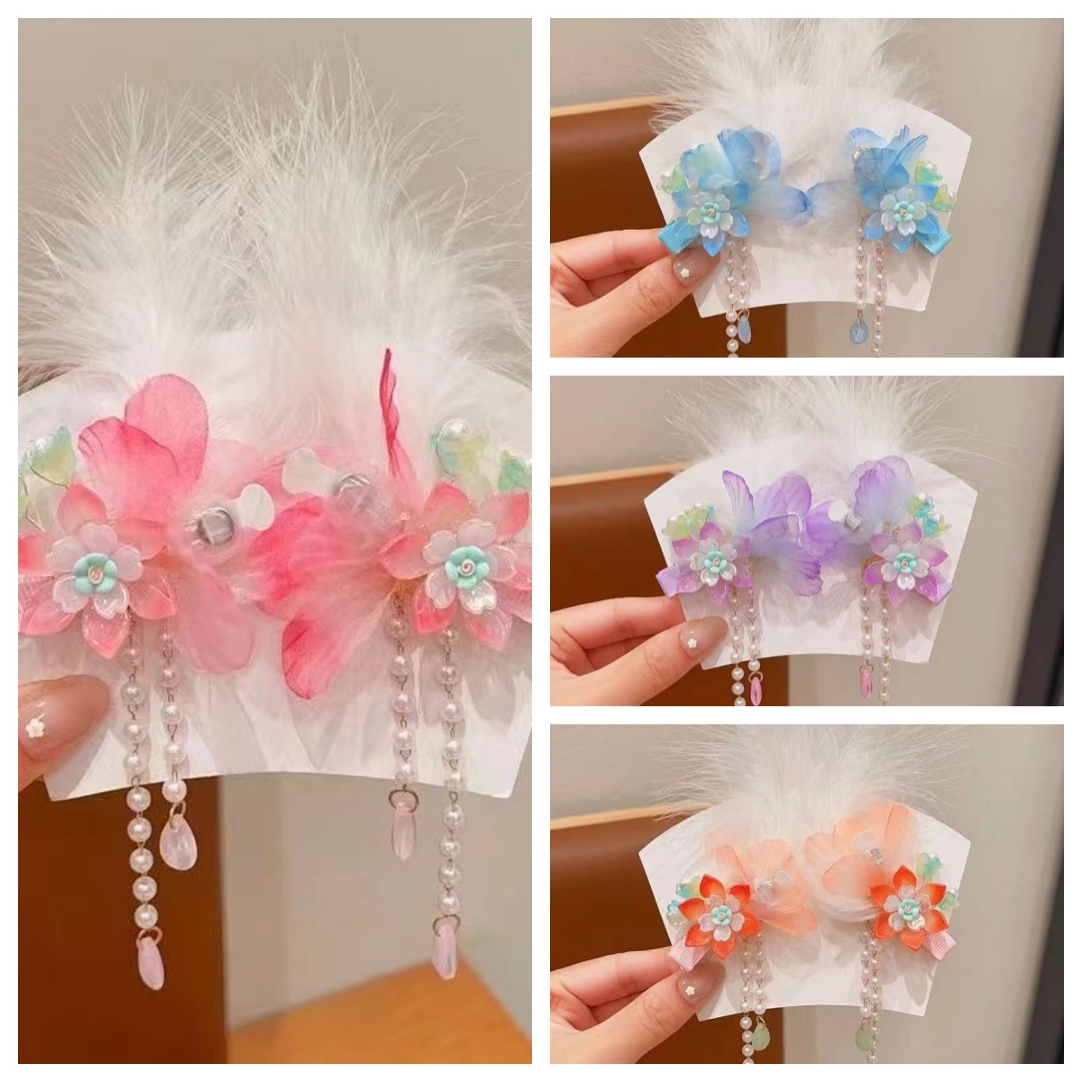 儿童古风发饰流苏对夹中国风花朵汉服发夹小女孩头饰刺绣蝴蝶头饰