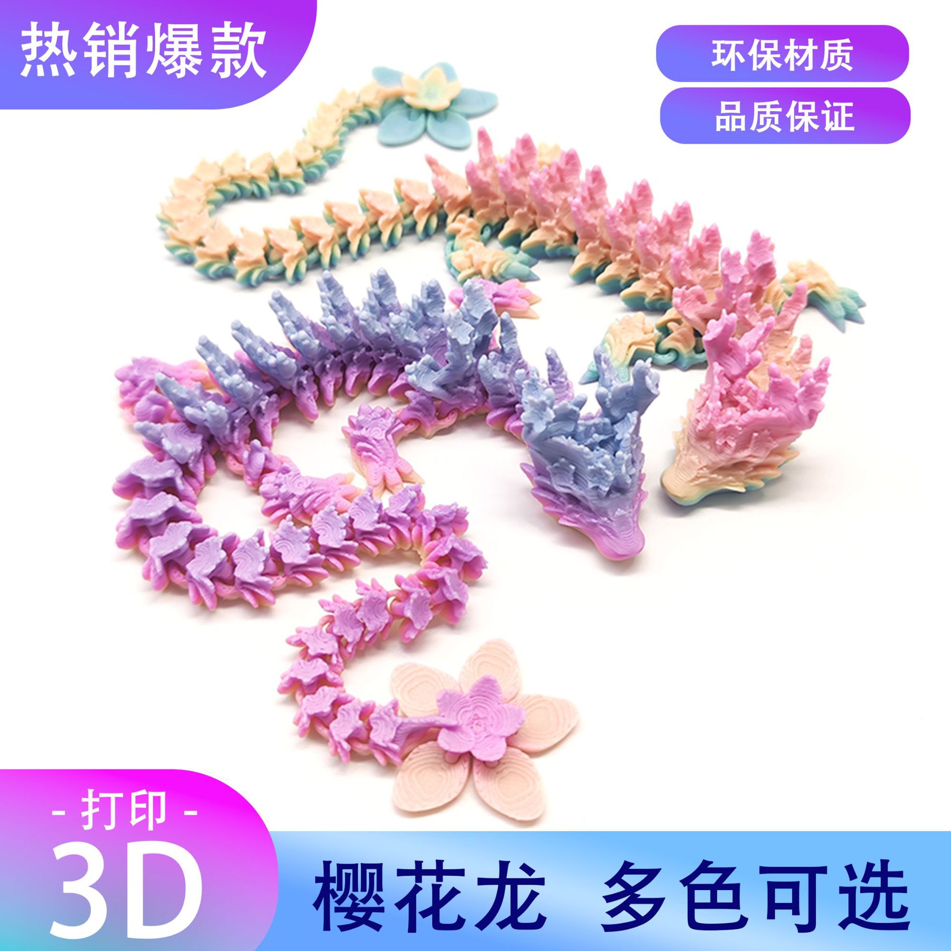 3Dプリント桜龍置物 中国龍 跨境人気商品 可動関節玩具 クリエイティブ工芸品モデル