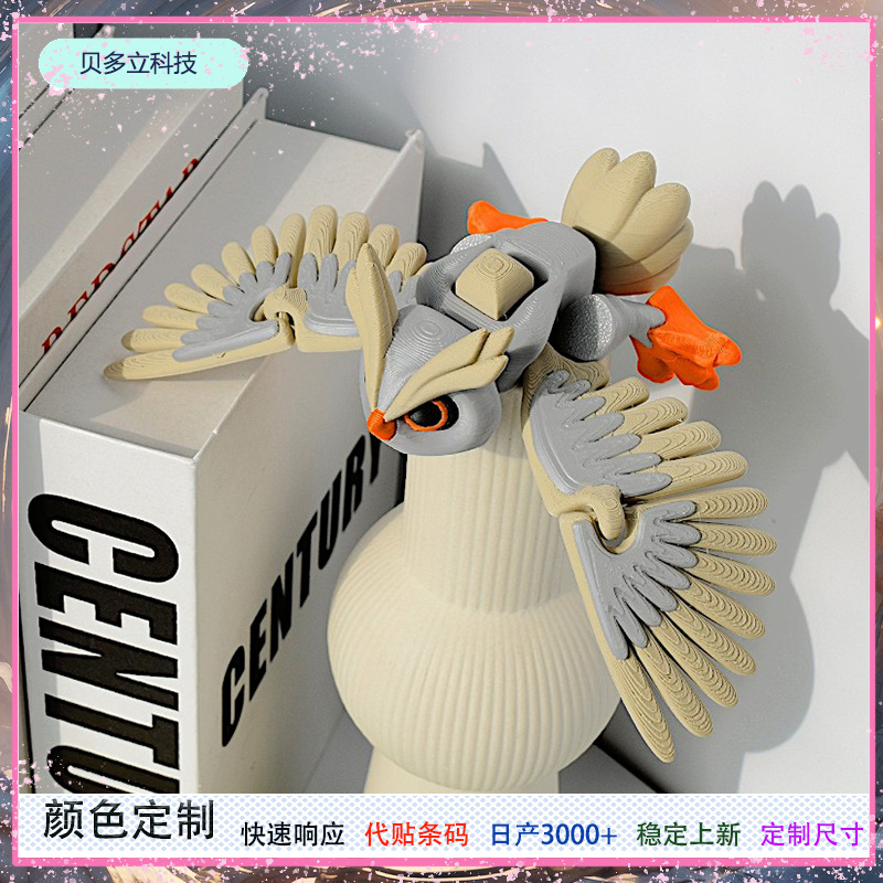 亚马逊跨境3D打印可动猫头鹰关节灵活爆款动物模型手办玩具摆件tk