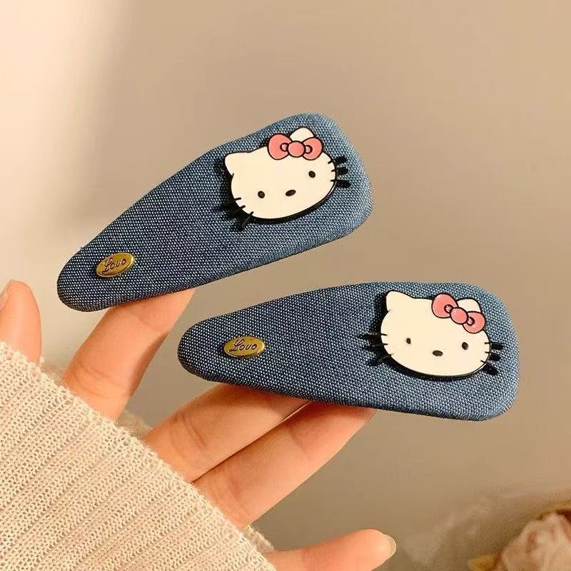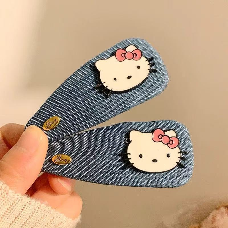 新款精致蓝色kt猫咪牛仔掰掰夹发夹甜美可爱多巴胺刘海侧边夹发饰
