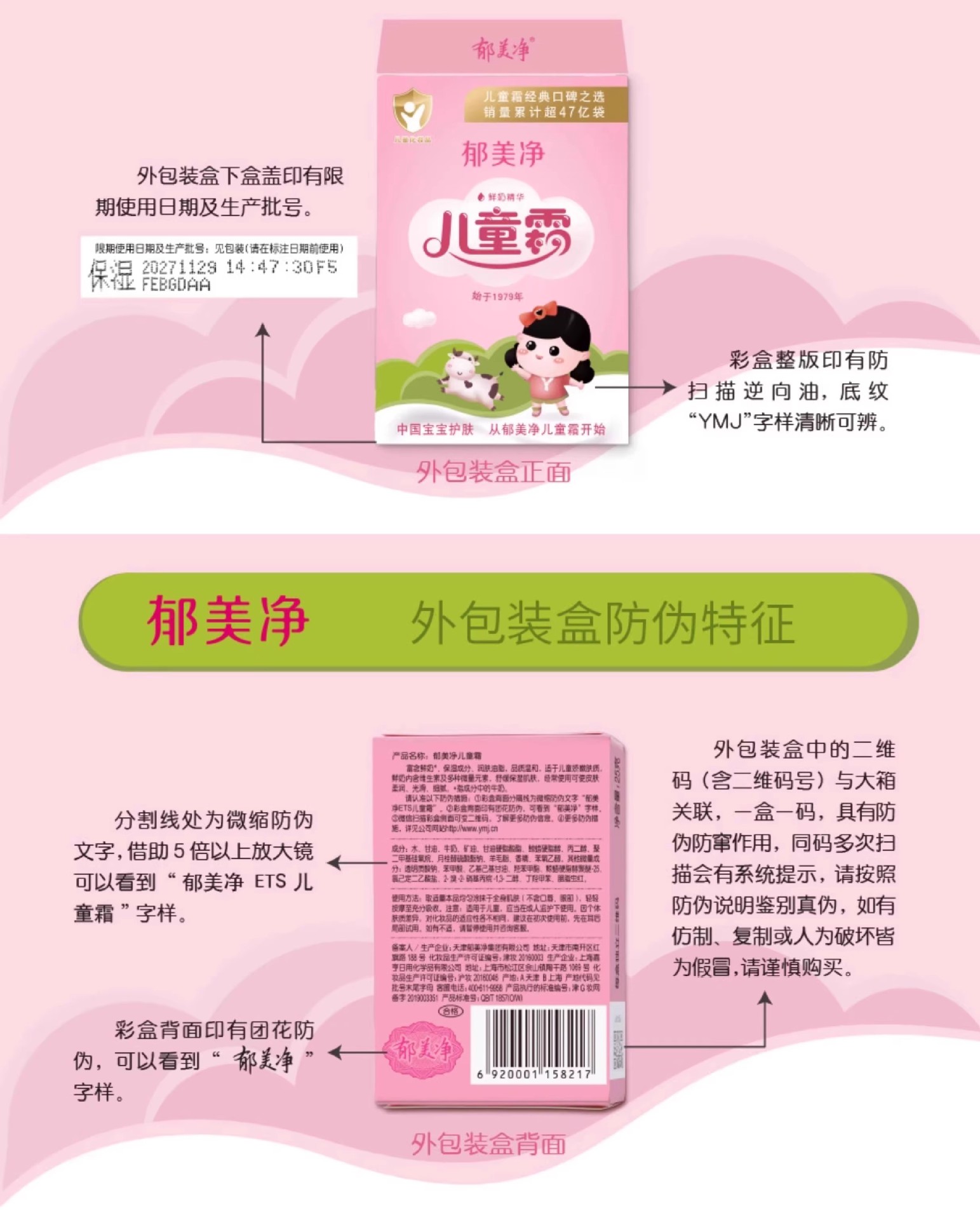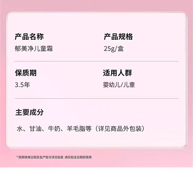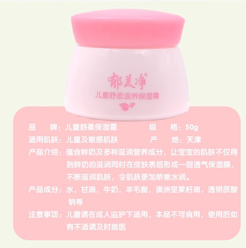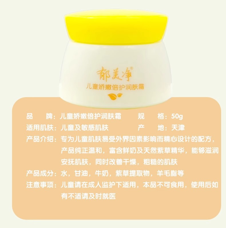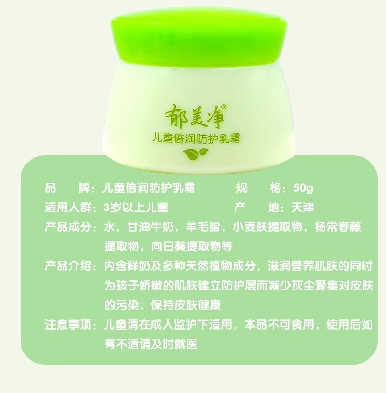 郁美净儿童霜滋润霜50g舒柔滋养补水保湿倍润防护乳霜娇嫩润肤霜