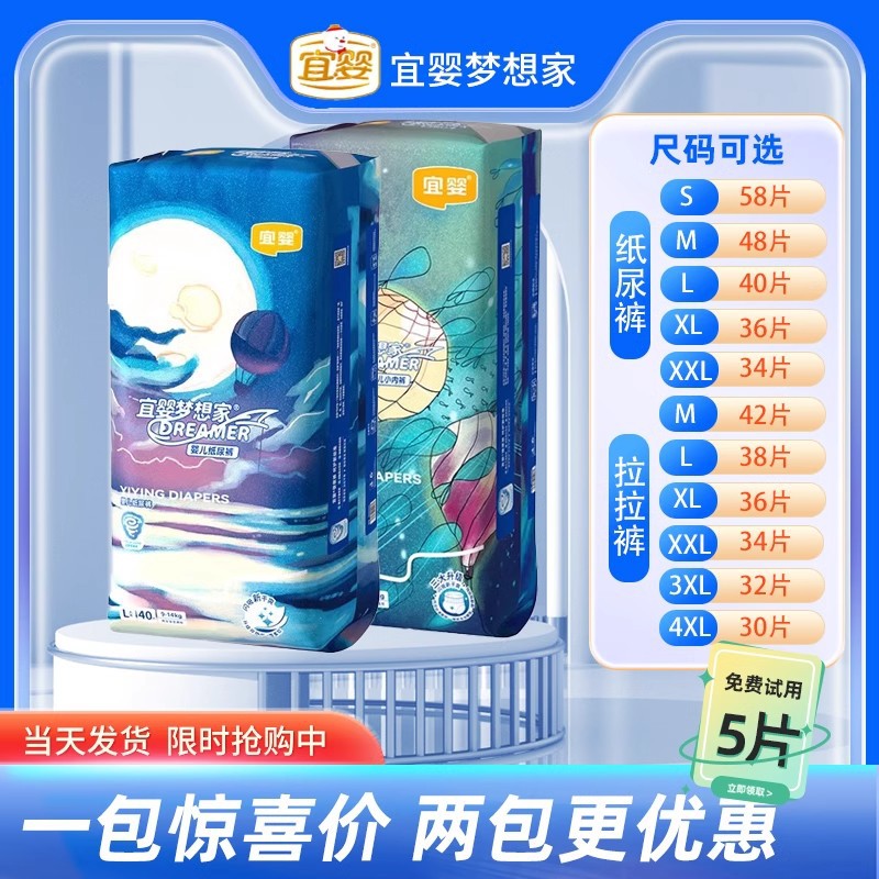 Yiying ベビーおむつ New Dreamer プルアップパンツ超薄型通気性おむつ XL/XXL 男女兼用ベビードライ