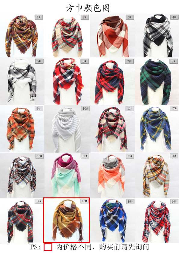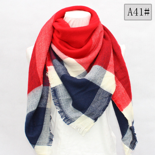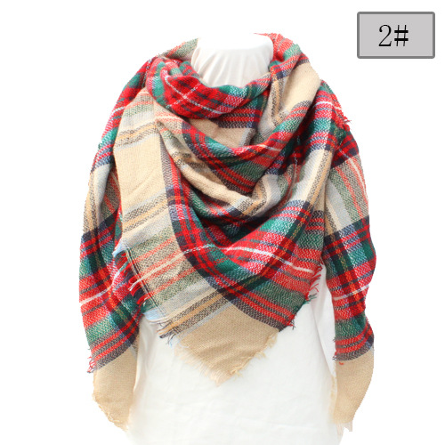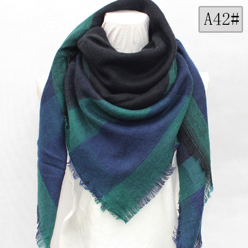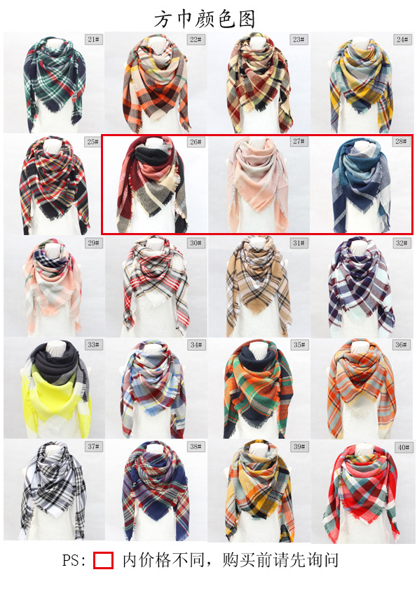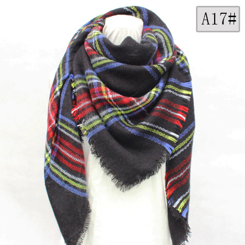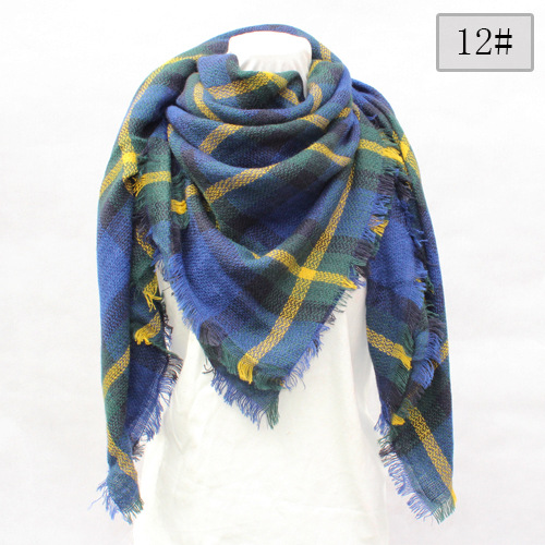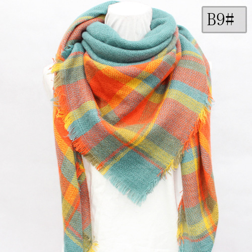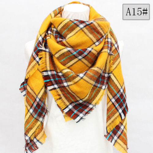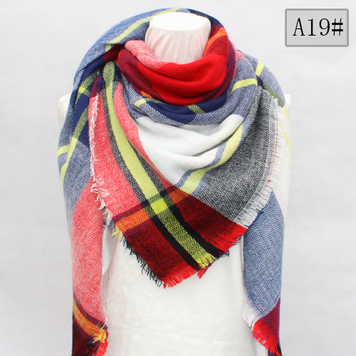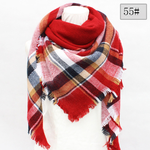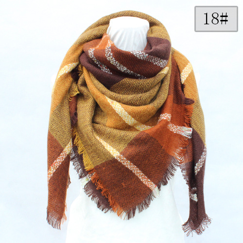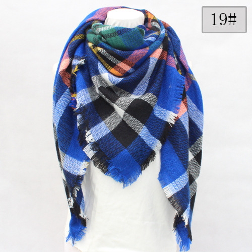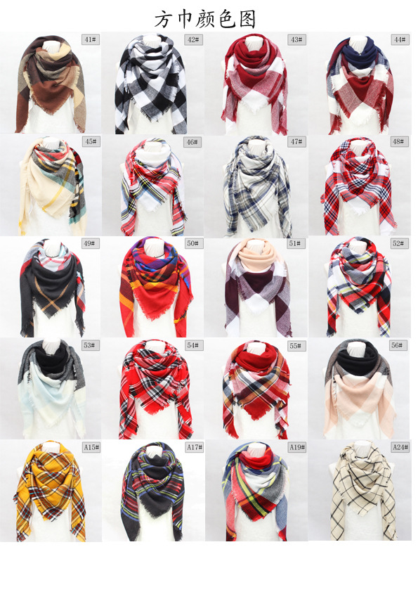 Amazonのヨーロッパとアメリカの春、秋、冬の模造カシミアカラフルな格子柄の三角ショール、スカーフ、ネックスカーフメーカー、ヨーロッパとアメリカンスタイル