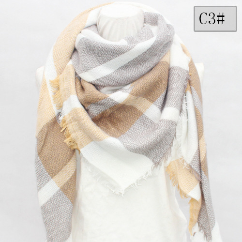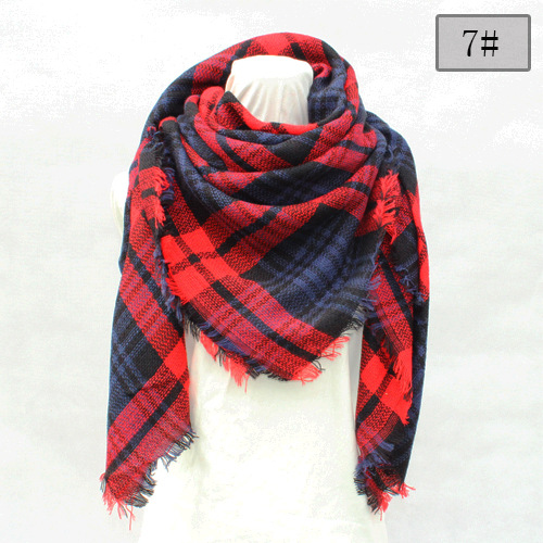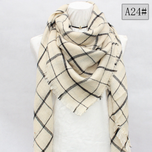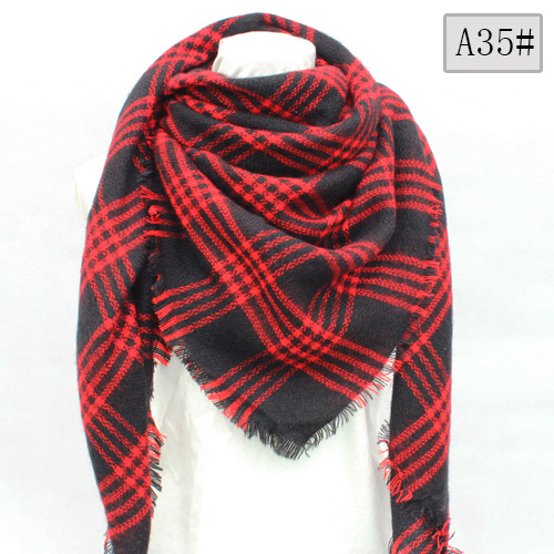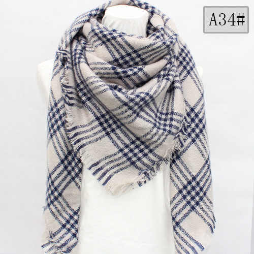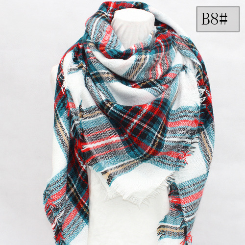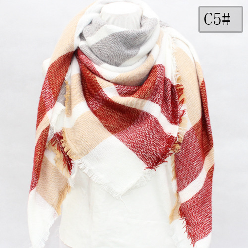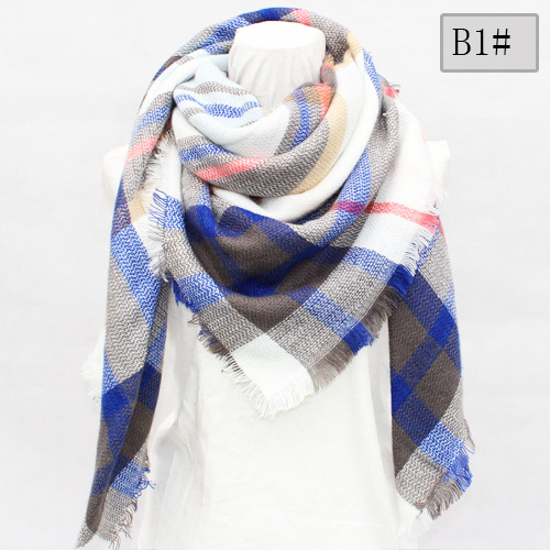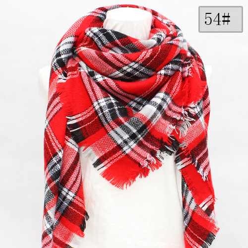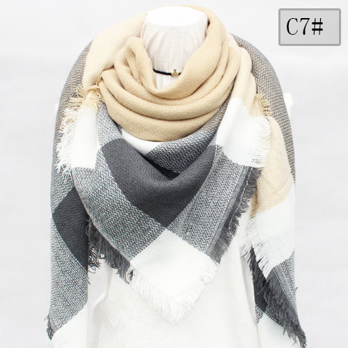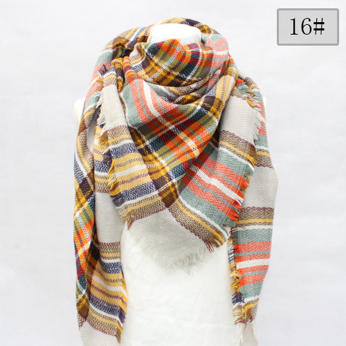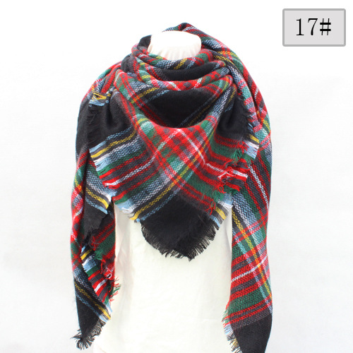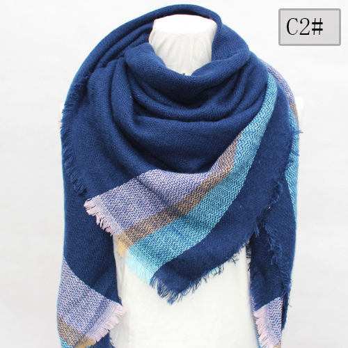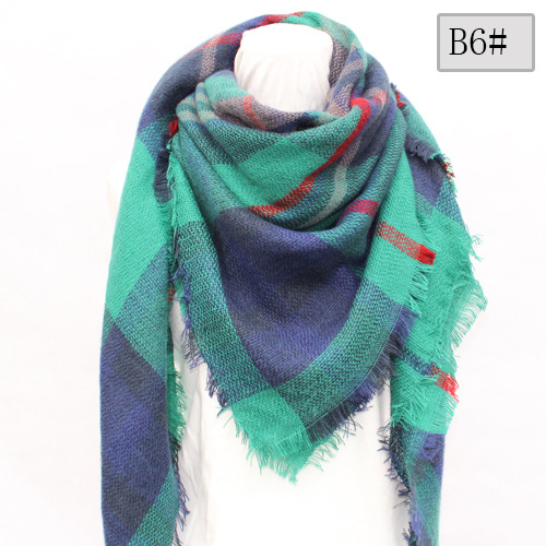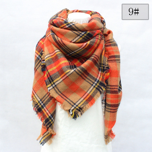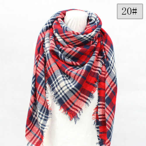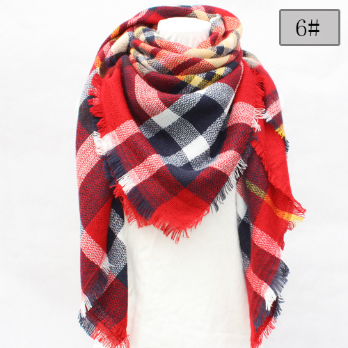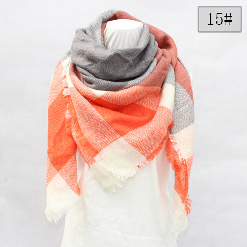 Amazonのヨーロッパとアメリカの春、秋、冬の模造カシミアカラフルな格子柄の三角ショール、スカーフ、ネックスカーフメーカー、ヨーロッパとアメリカンスタイル