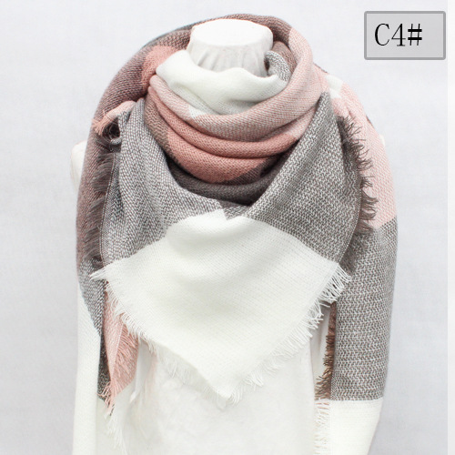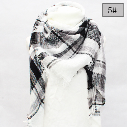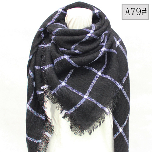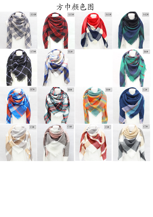 140cmチェック柄正方形スカーフ、欧米秋冬用、イミテーションカシミヤ、両面七色、レディース、海外貿易、ショール、スカーフ、卸売