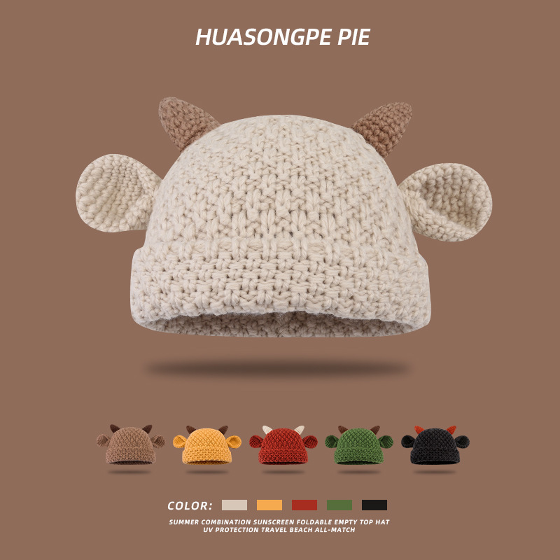 かわいい百合牛の角の耳の毛糸の帽子の子供の手作業で韓国版の甘くてかわいい百合頭の帽子の潮男を編みます。