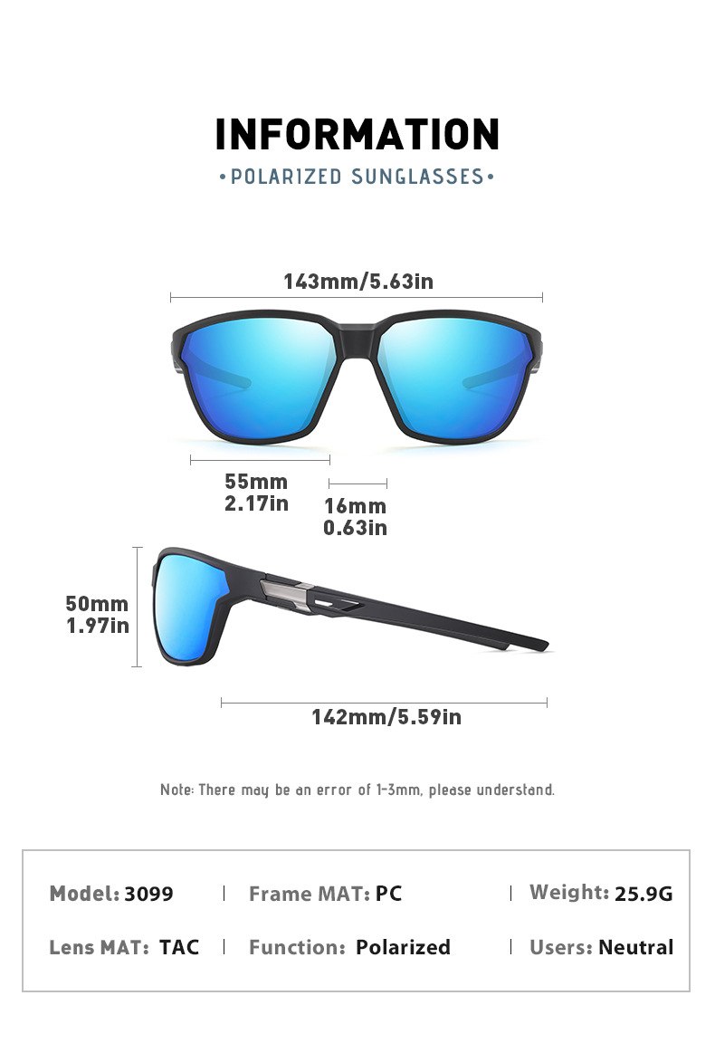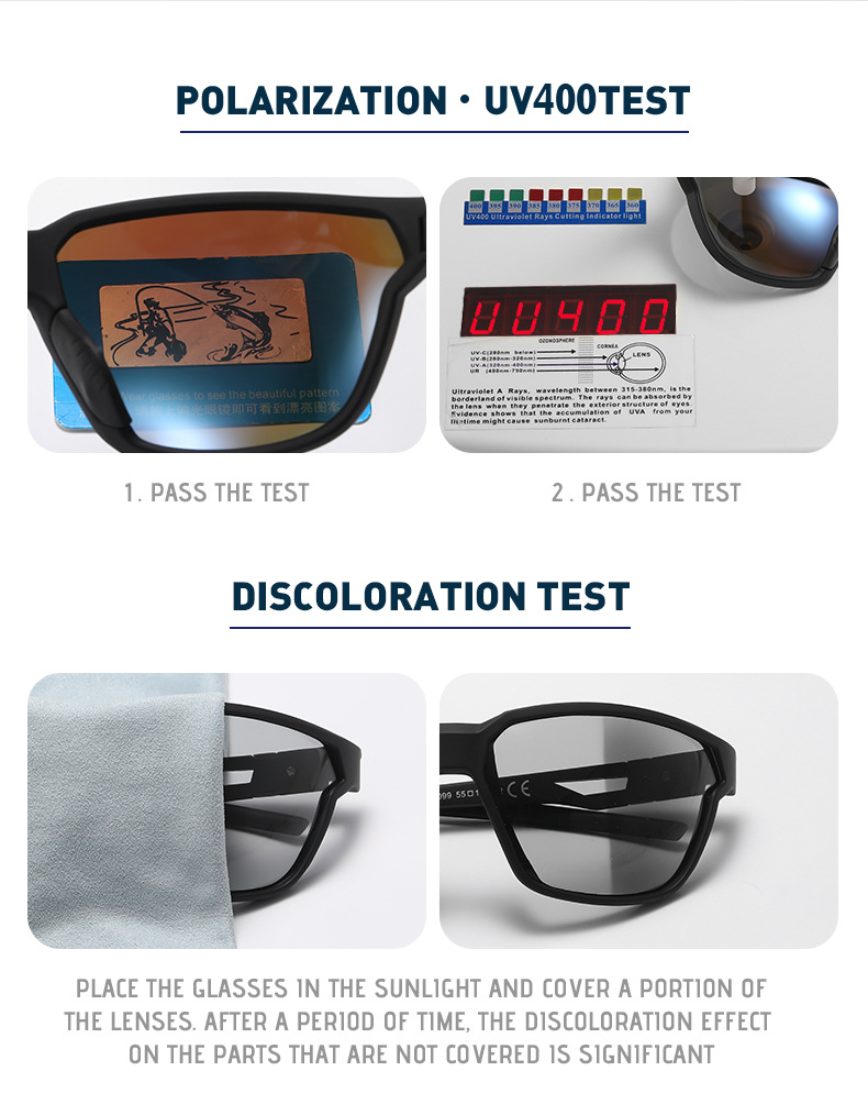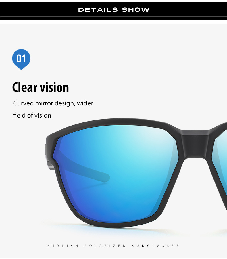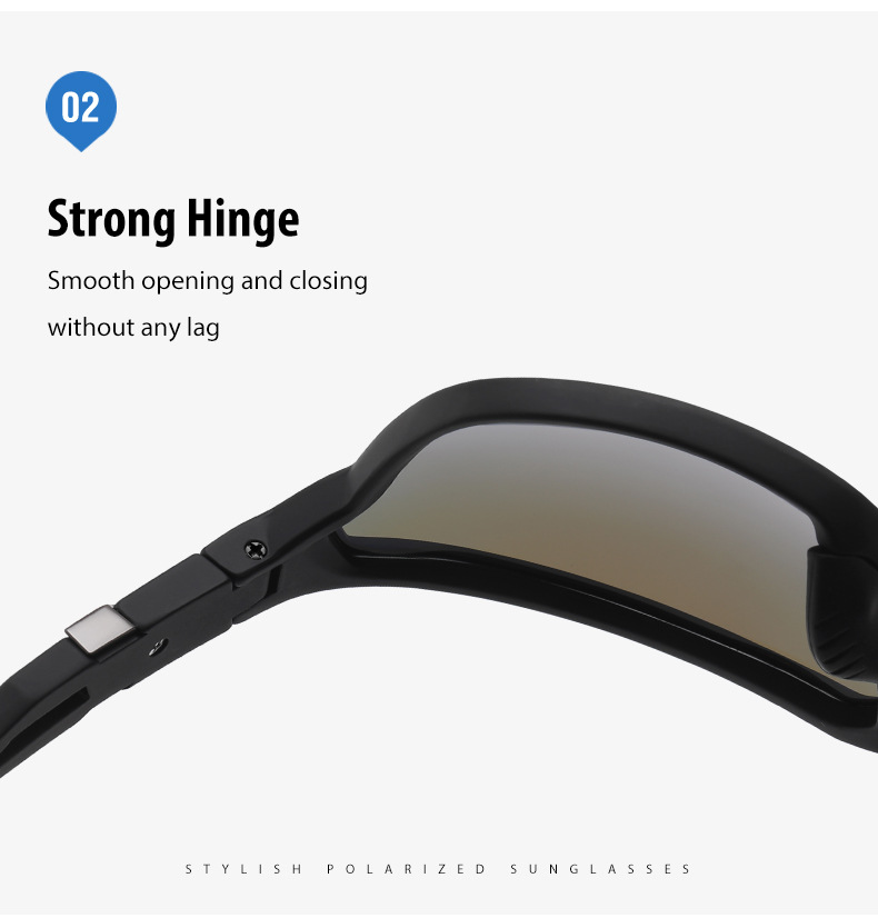 此款偏光太阳镜镜片采用加厚强化镜片,强化镜片的优点是更耐磨,柔韧性更好,抗冲击力更强,视线更清晰,防眩光效果更好!