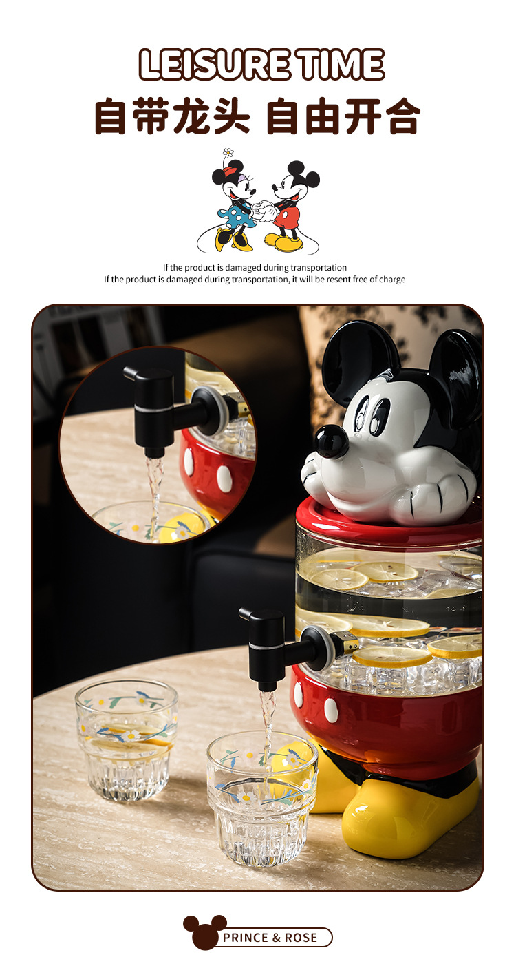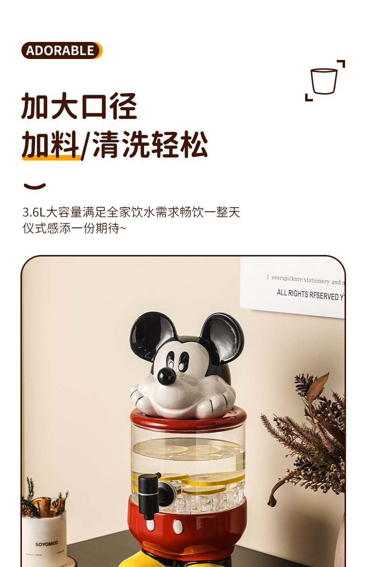 小熊ガラス冷水筒、蛇口付き、大容量水桶、水カップセット、家庭用、高級感のある飲料水容器、卸売