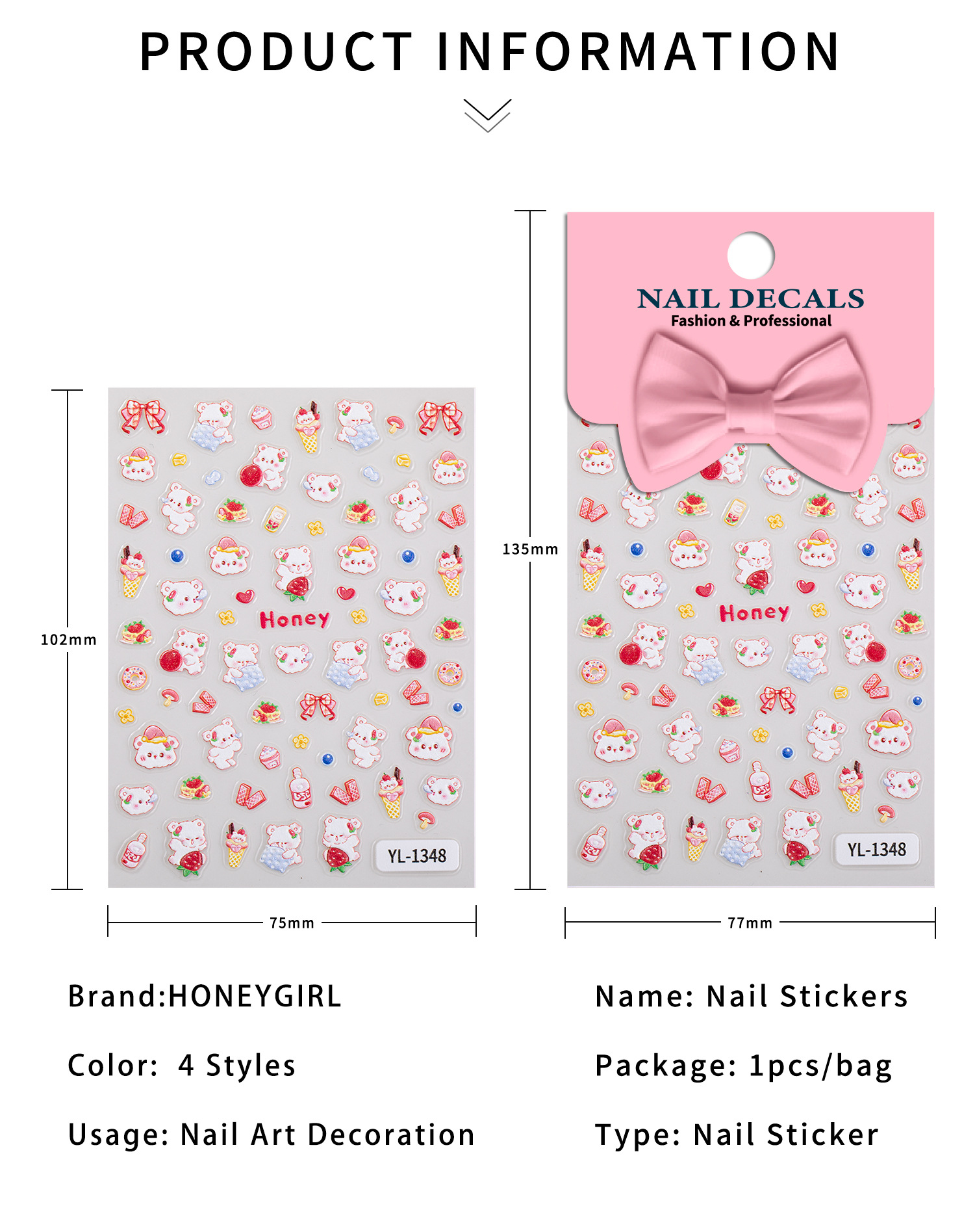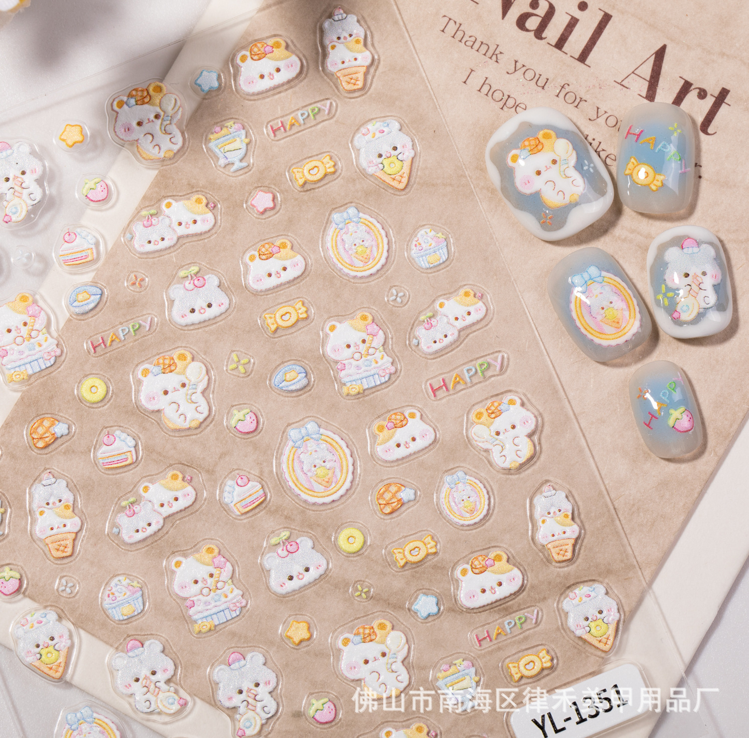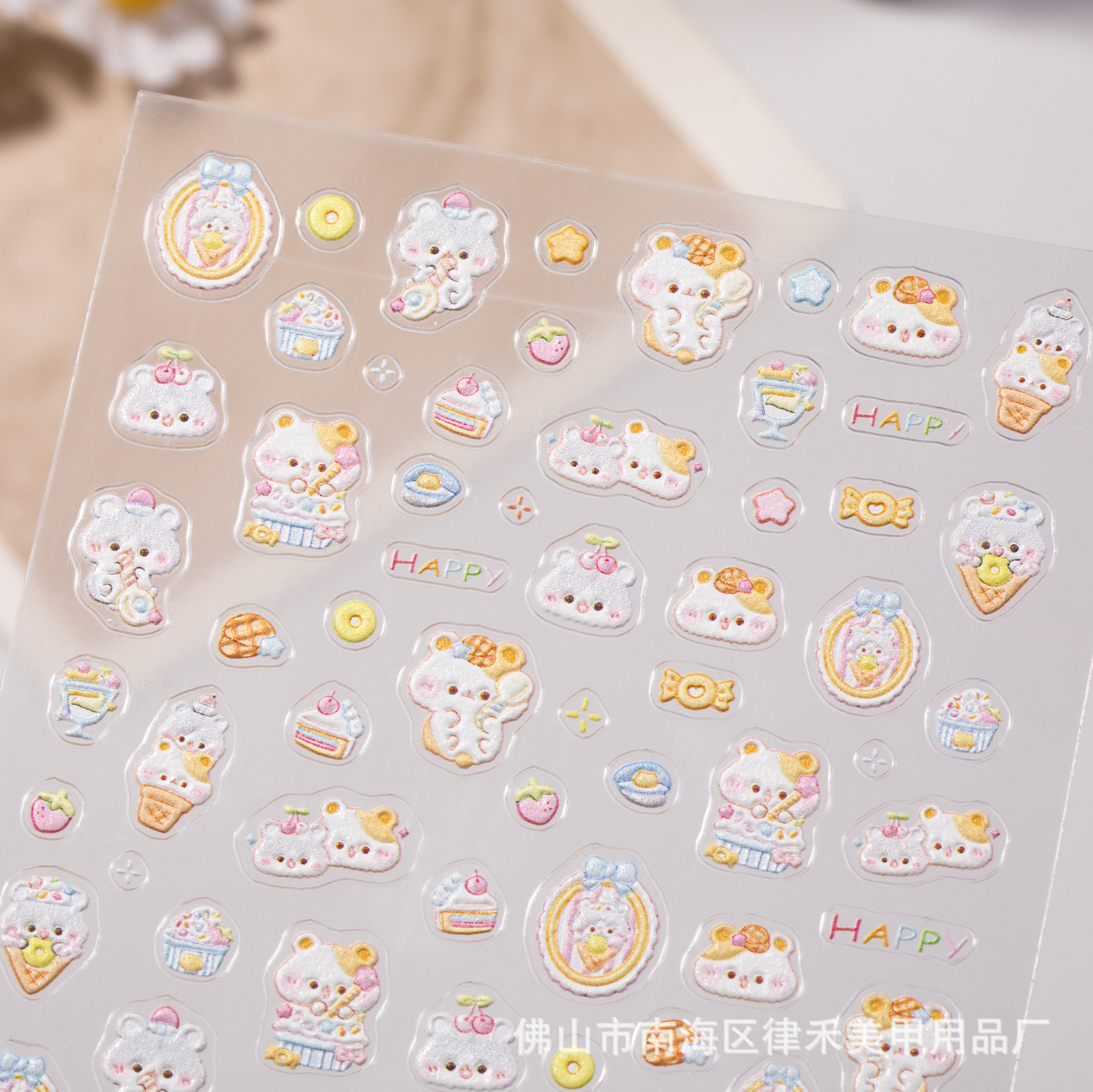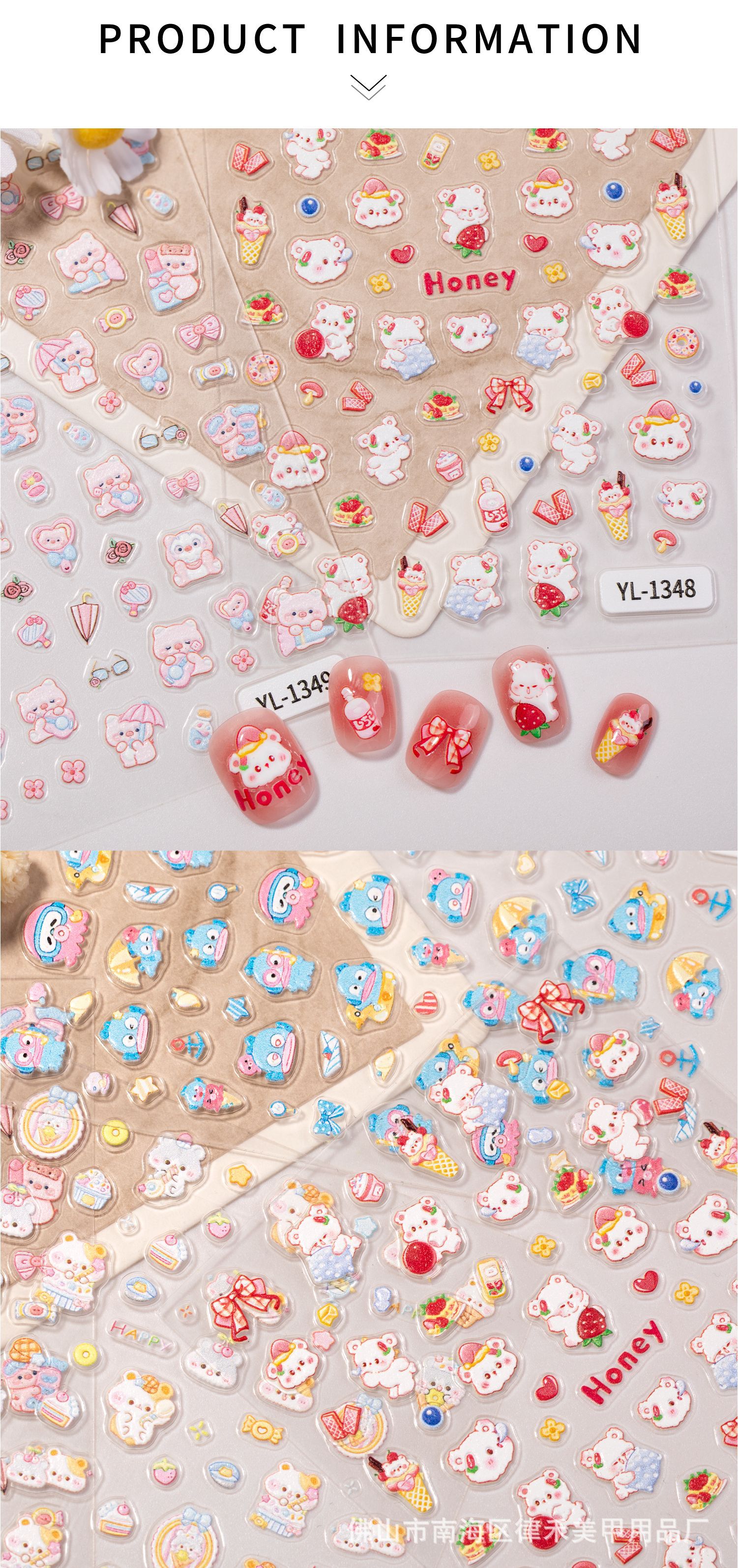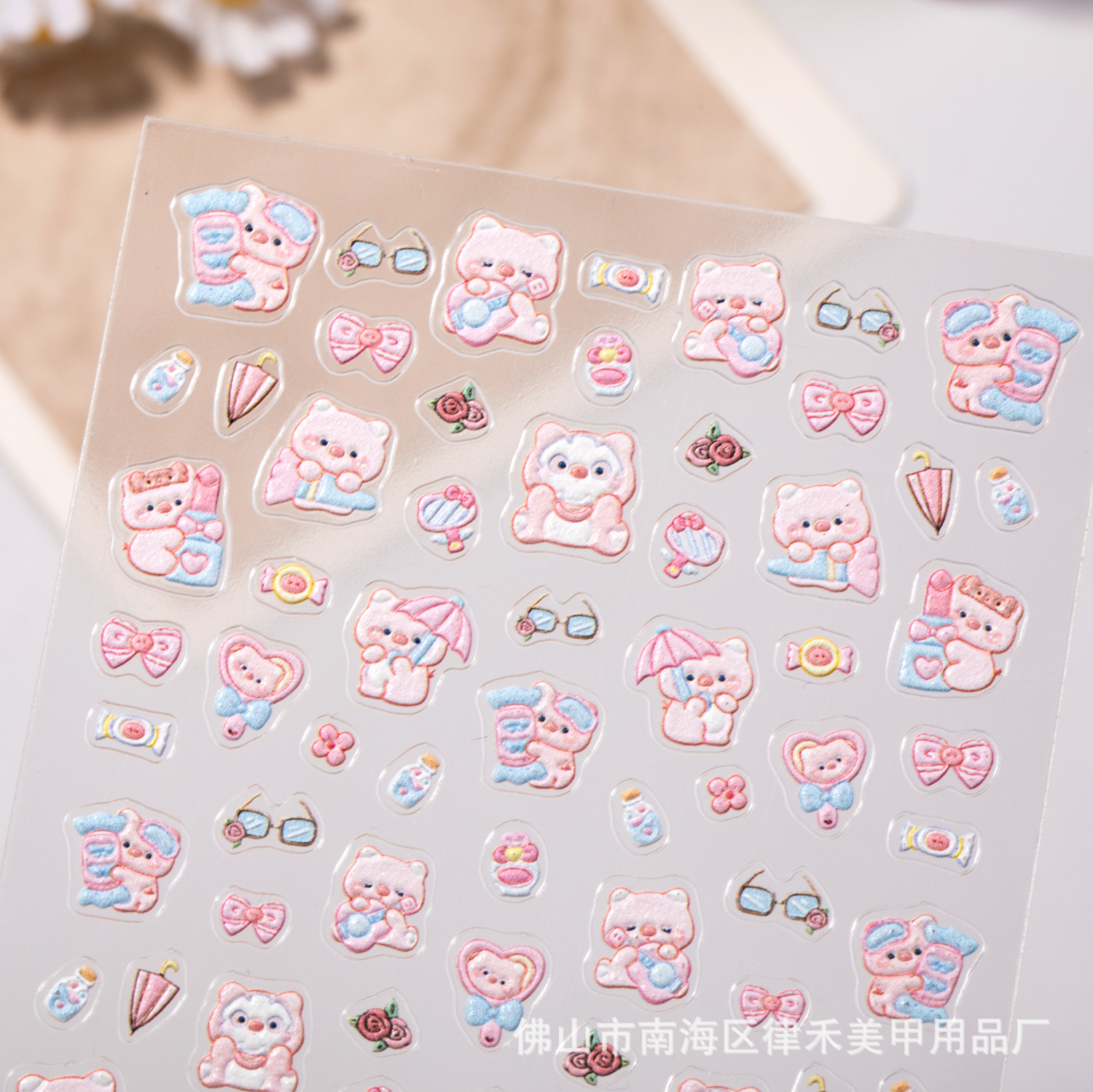 卡通可爱涂鸦小狗小兔美甲贴纸浮雕少女心蝴蝶结小熊小猫指甲饰品