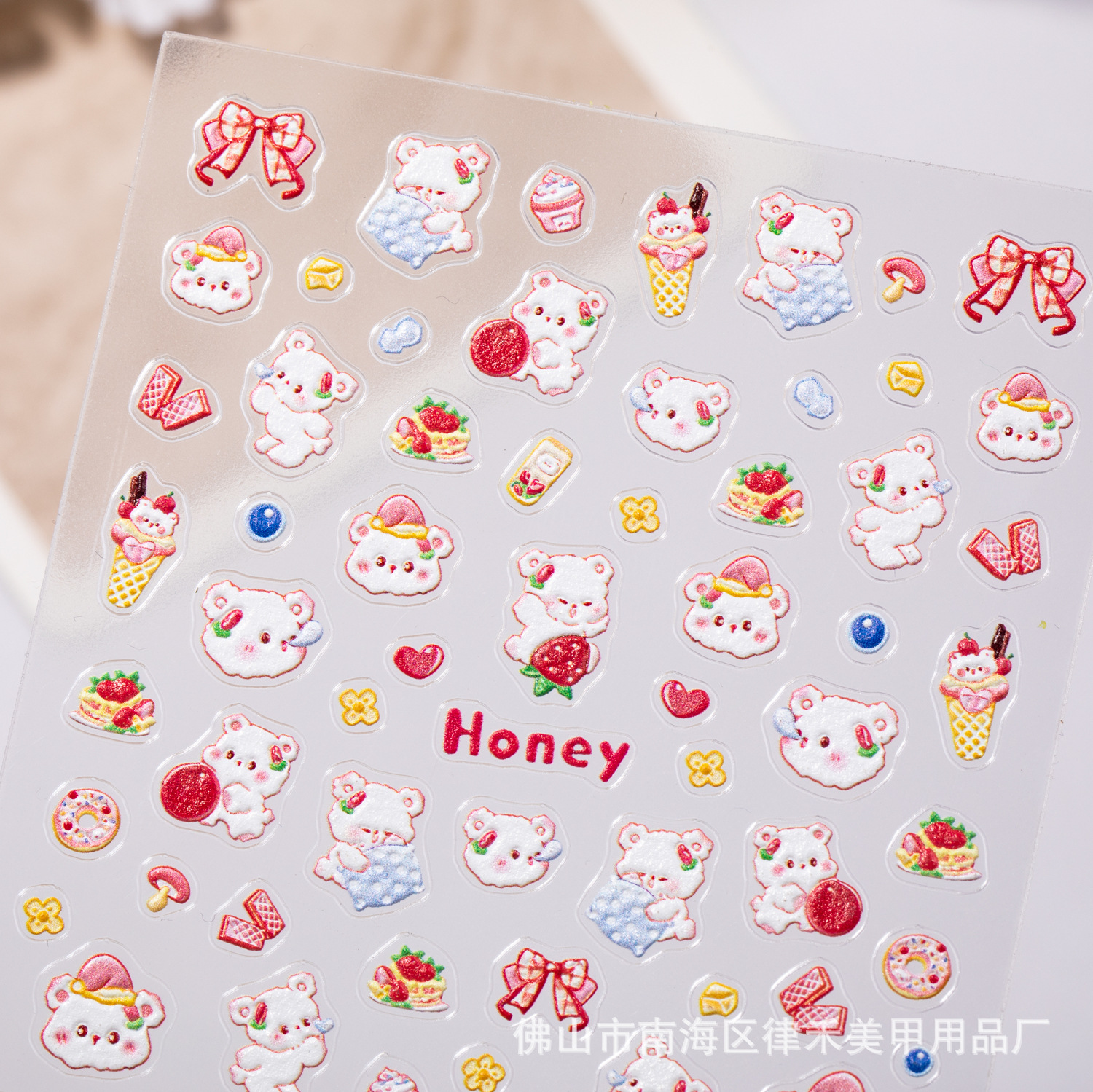 漫画かわいい愛の弓猫クマネイルアートステッカーエンボス加工超かわいい魔法のクマのネイルデコレーション