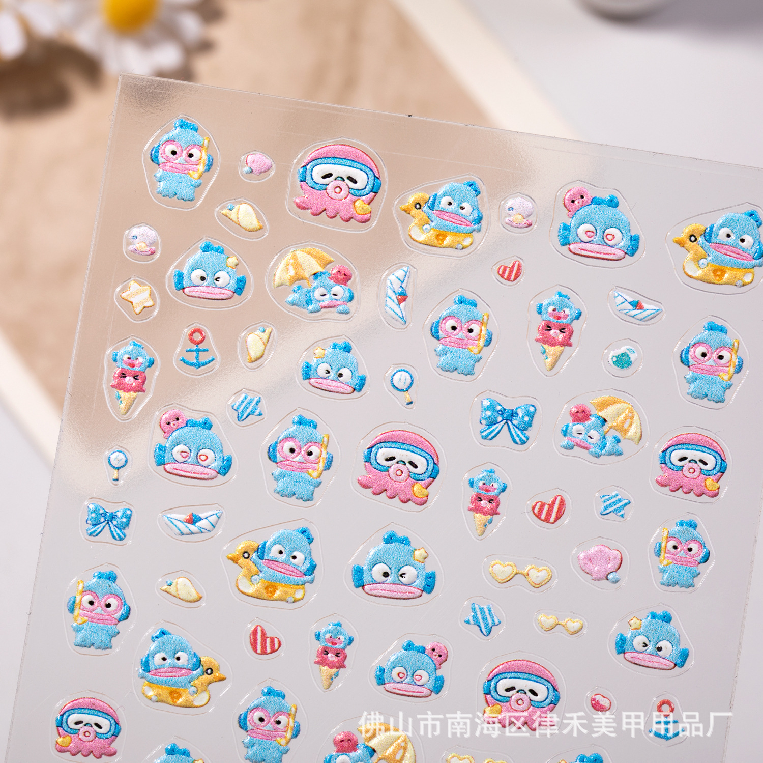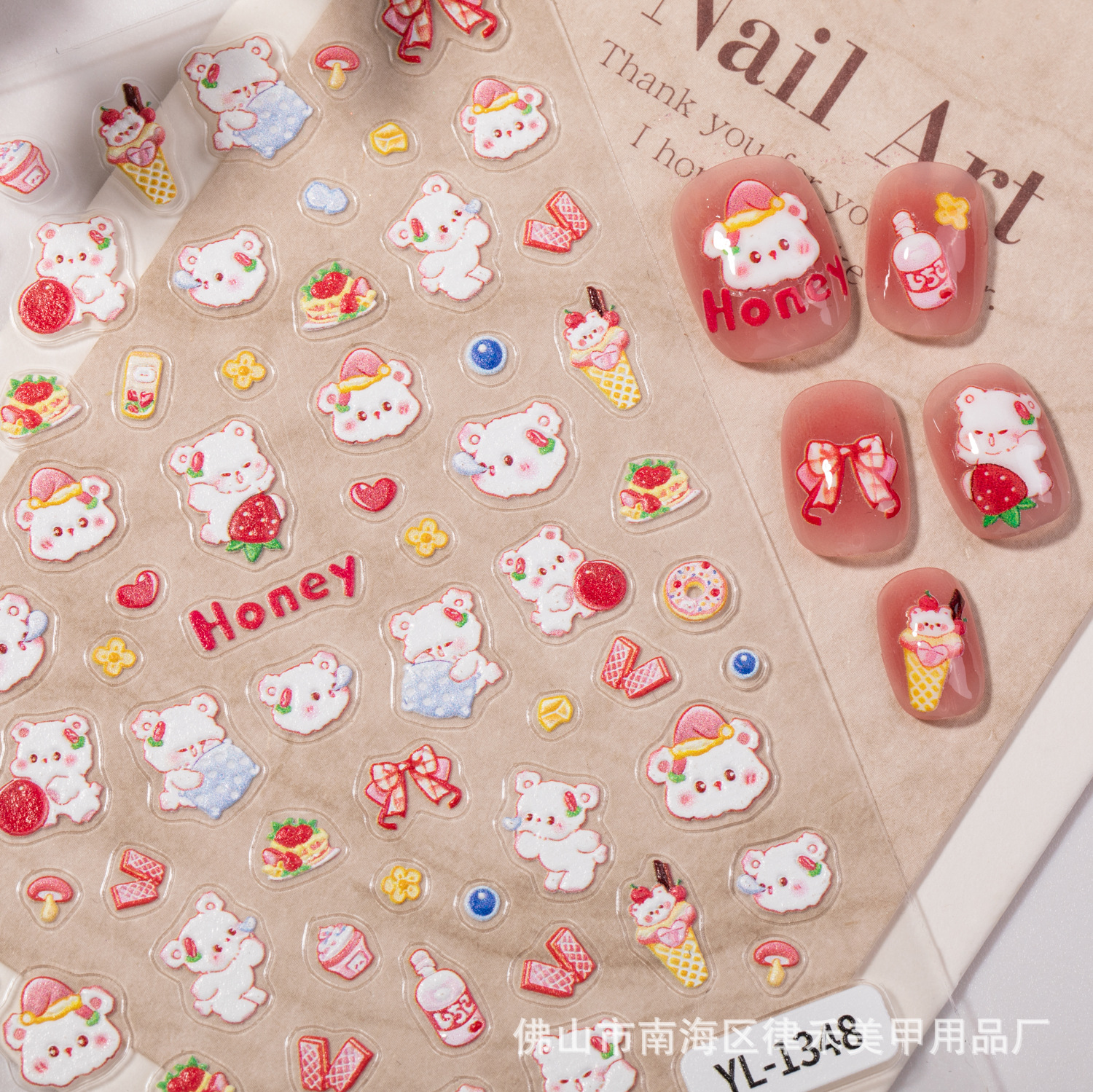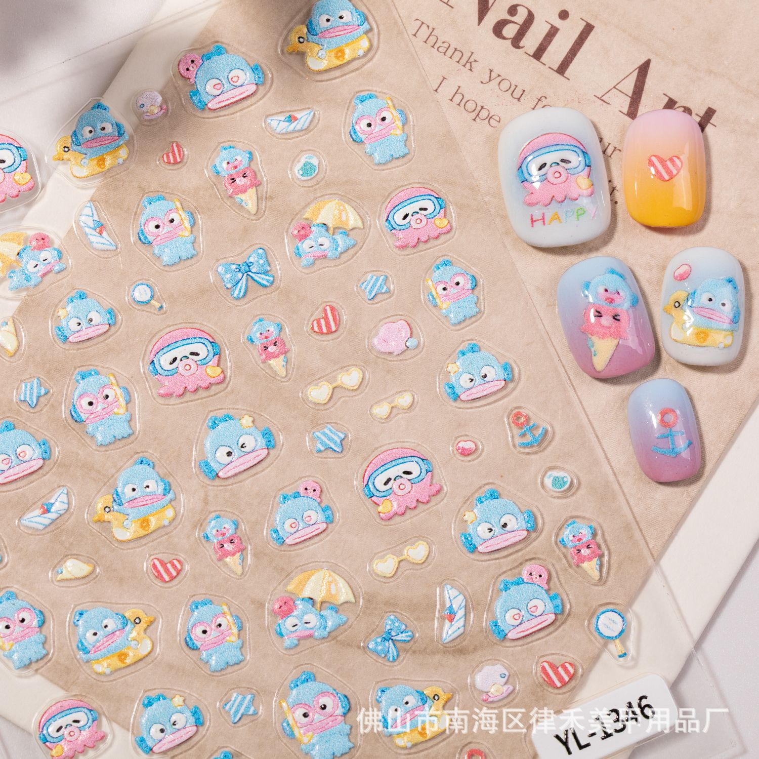 卡通可爱呆萌小丑鱼美甲贴纸浮雕立体贪吃草莓小熊小猪指甲贴纸