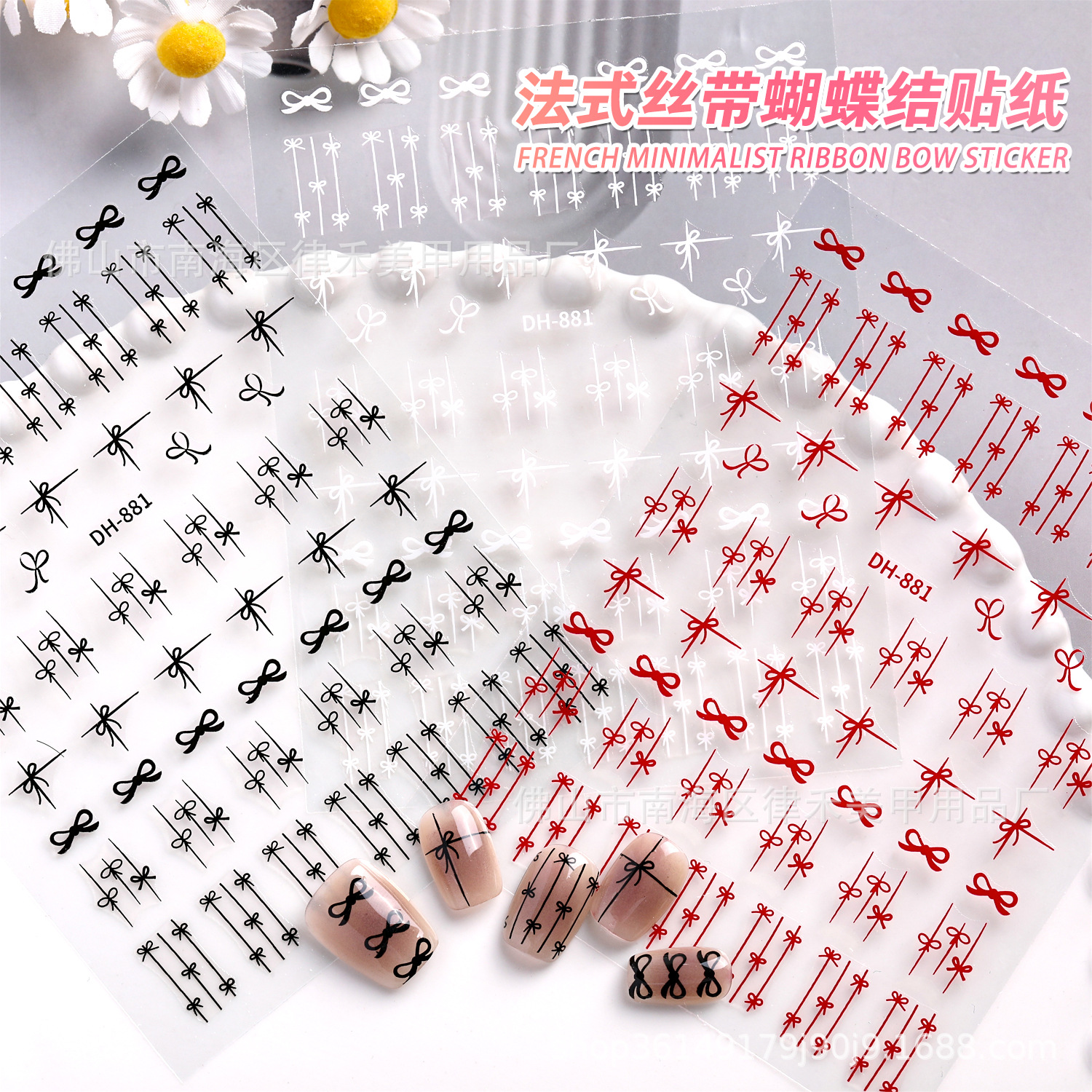 ネットセレブ人気フレンチ文具ネイルステッカー赤いリボンステッカーネイルアートステッカーミックス白黒リボンステッカー