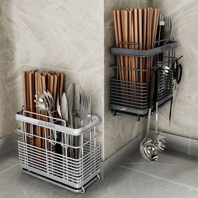 304ステンレス箸立て家庭用箸収納ボックス箸籠壁掛け式キッチンナイフホルダースプーンホルダー