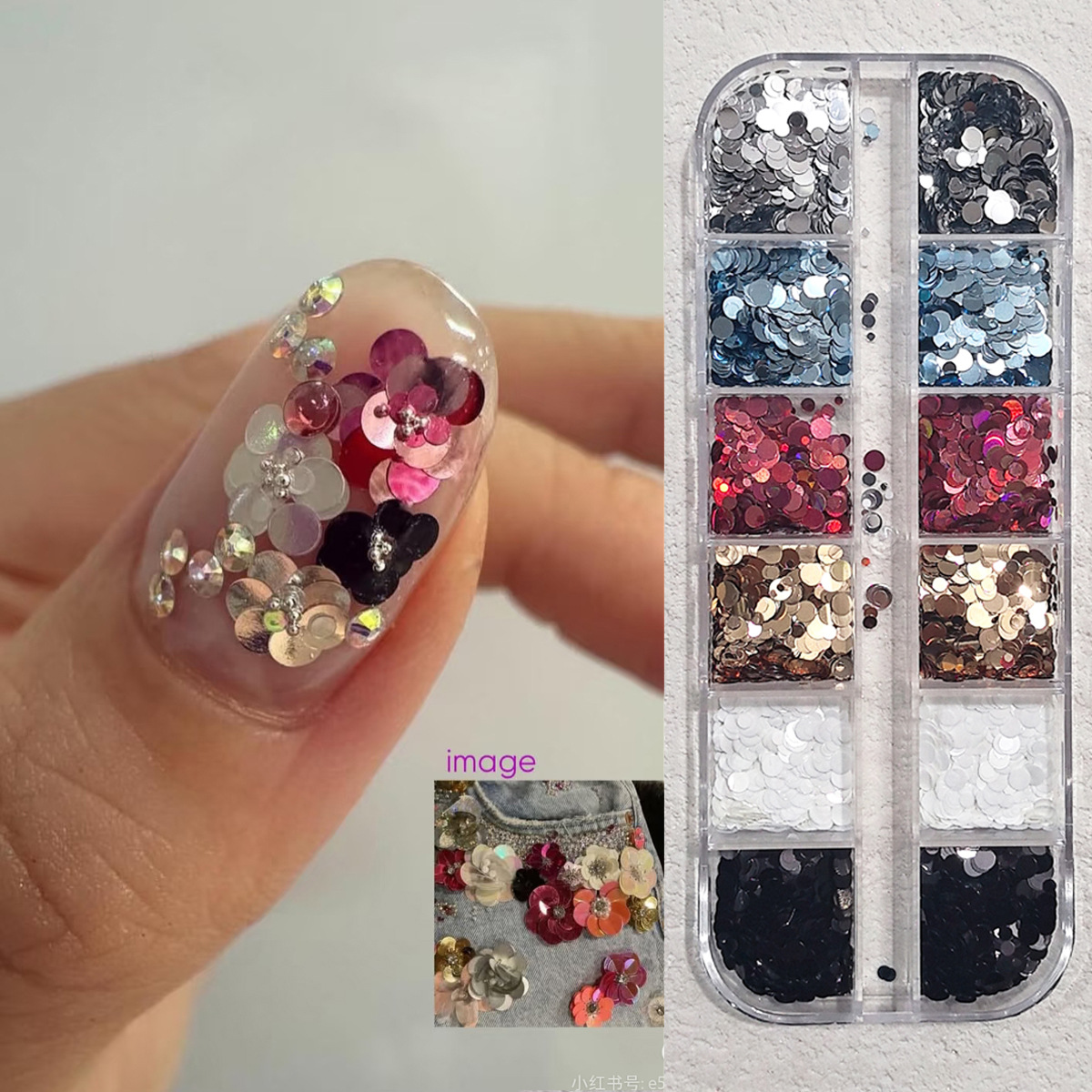 12格ins复古钉珠拼花波点亮片美甲小饰品闪片DIY百搭圆形亮片