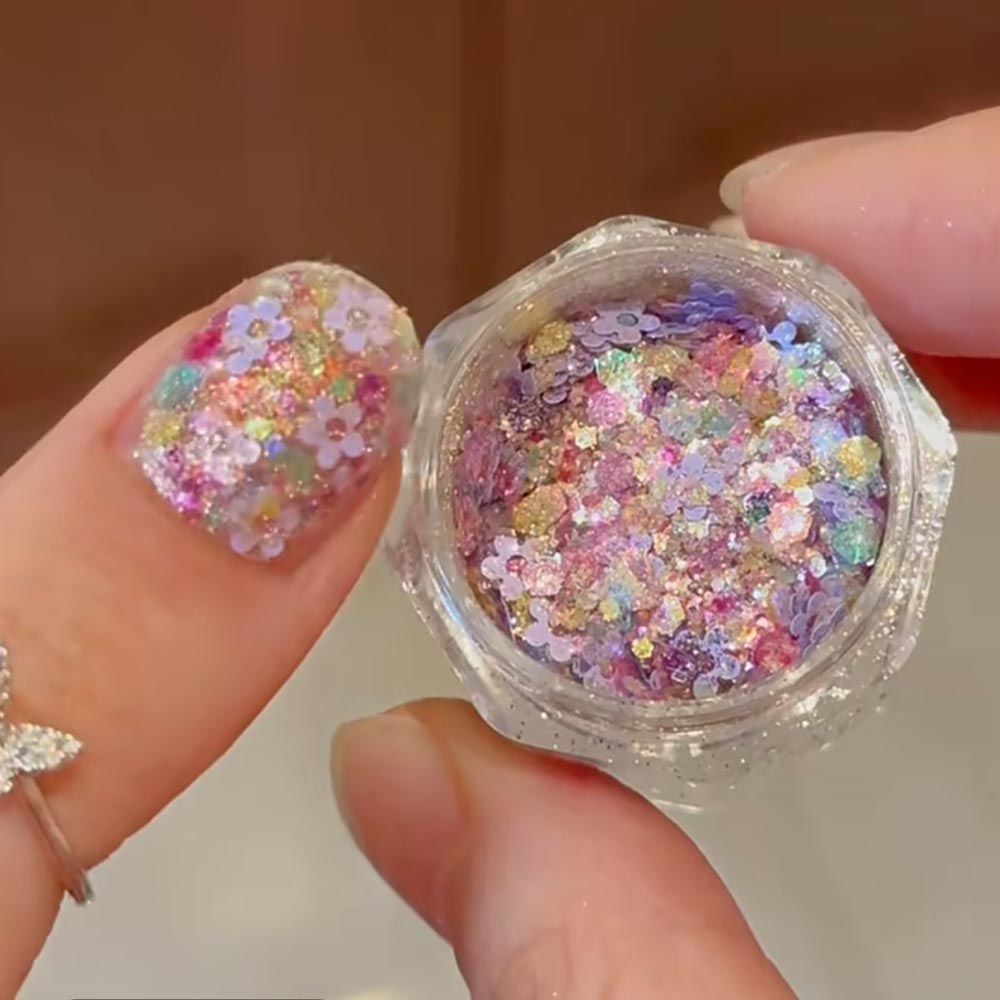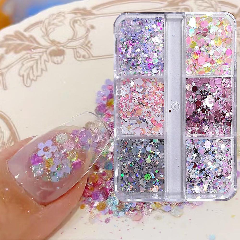 规格 6格闪粉亮片一盒,6格粉色偏光人鱼亮片,圣诞亮片6格套装一盒,6格爱心五角星亮片一盒,6格幻彩人鱼亮片一盒,花朵闪粉亮片一盒,夏日心动亮片一盒,满园春色亮片一盒,彩色五角星亮片一盒