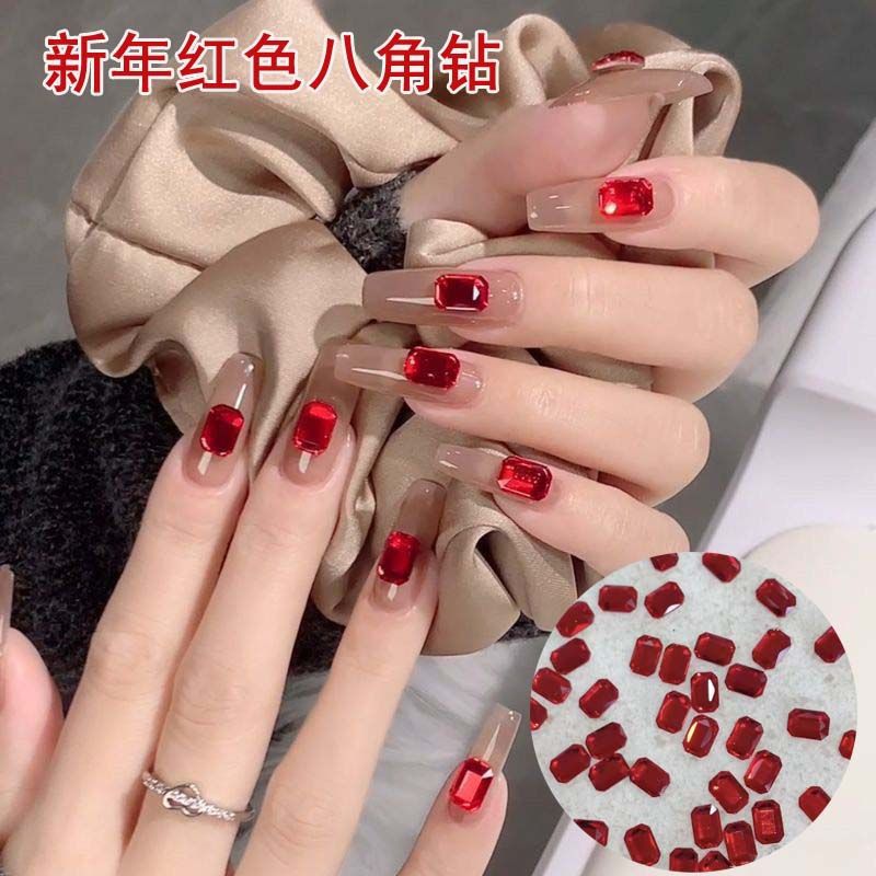 新年の赤い平底八角形マニキュアダイヤモンドジュエリーシンプルなハイエンドスーパーフラッシュネイル特殊形状ダイヤモンドウェアラブルアクセサリー