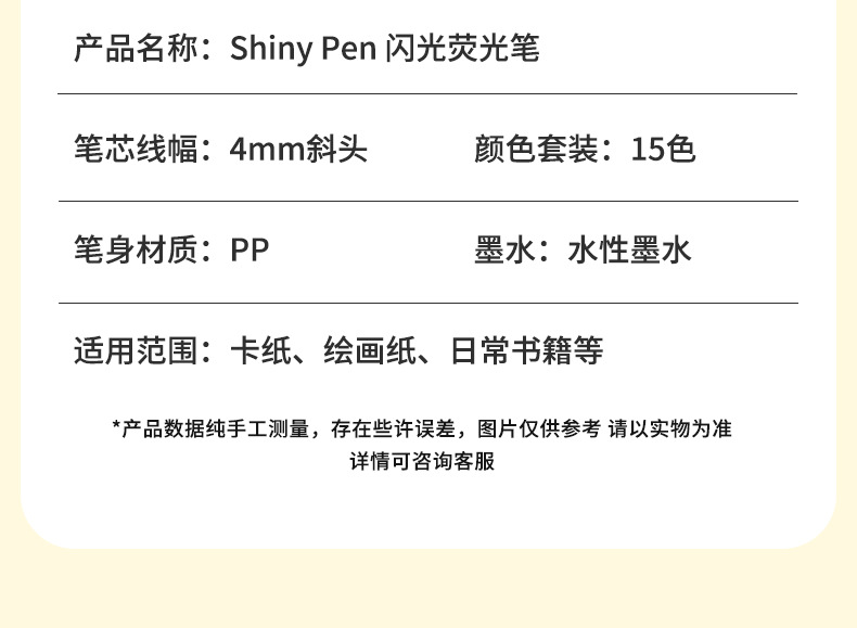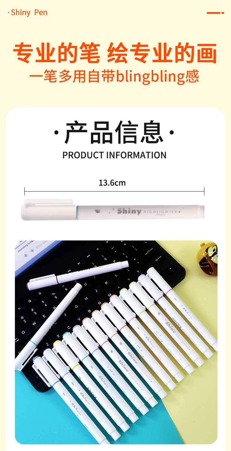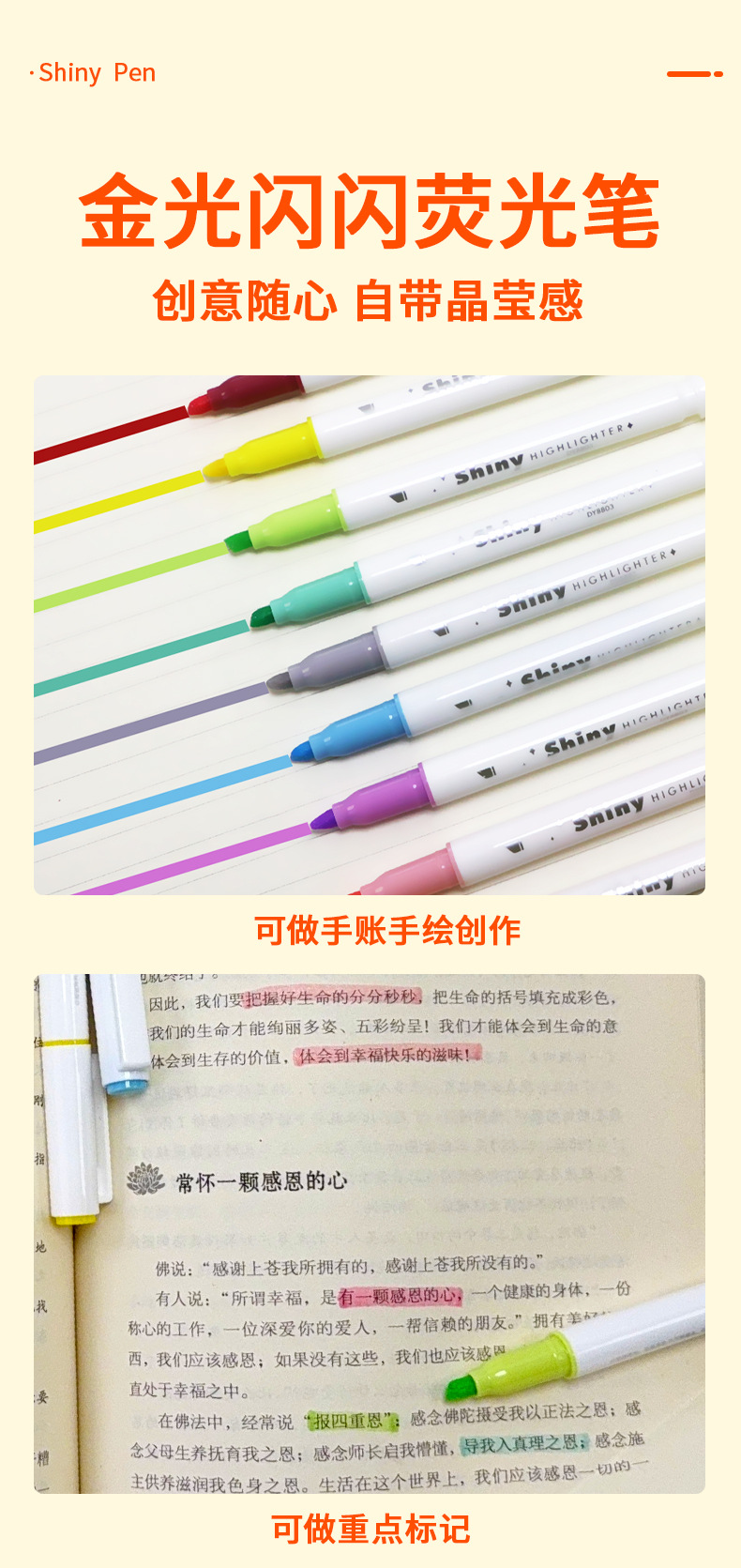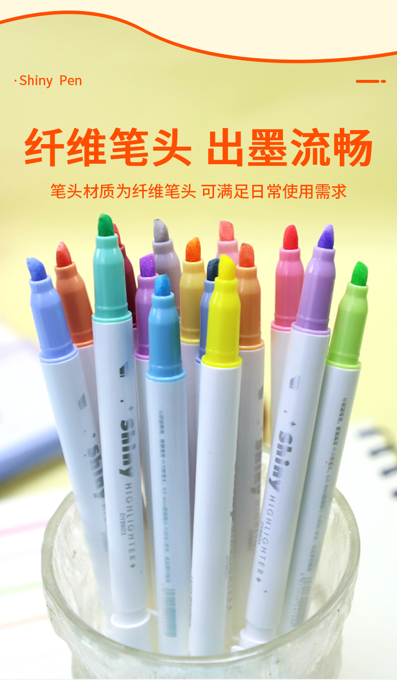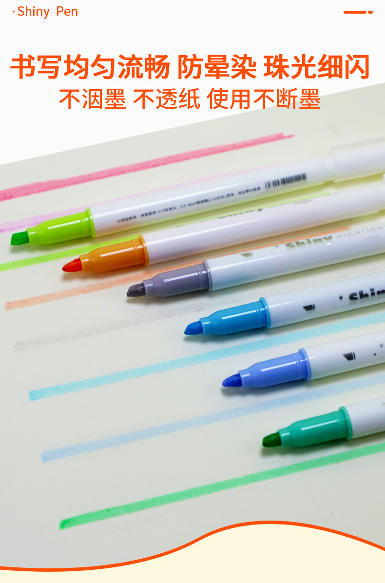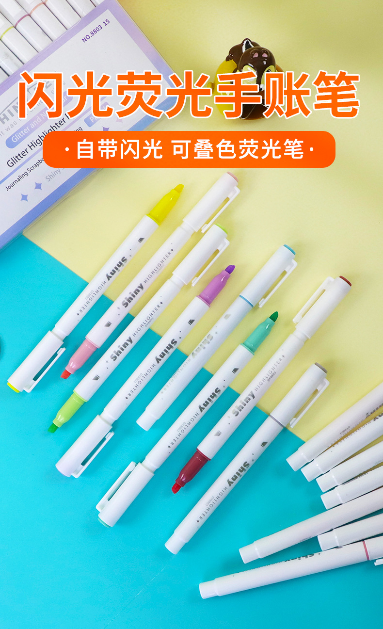 ins细闪荧光笔重点标记珠光记号笔斜头diy手帐彩绘荧光笔15色批发