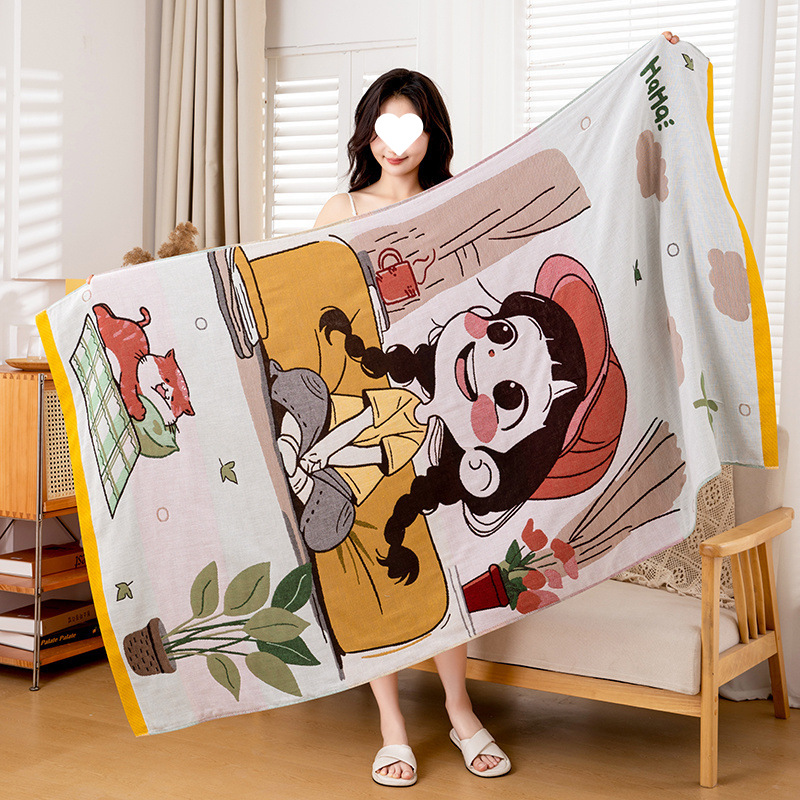 a类纯棉纱布浴巾男女家用吸水速干加大全棉儿童卡通学校洗澡裹巾