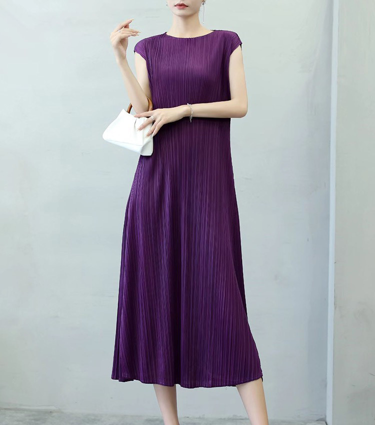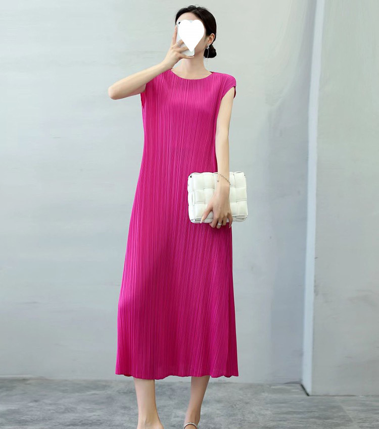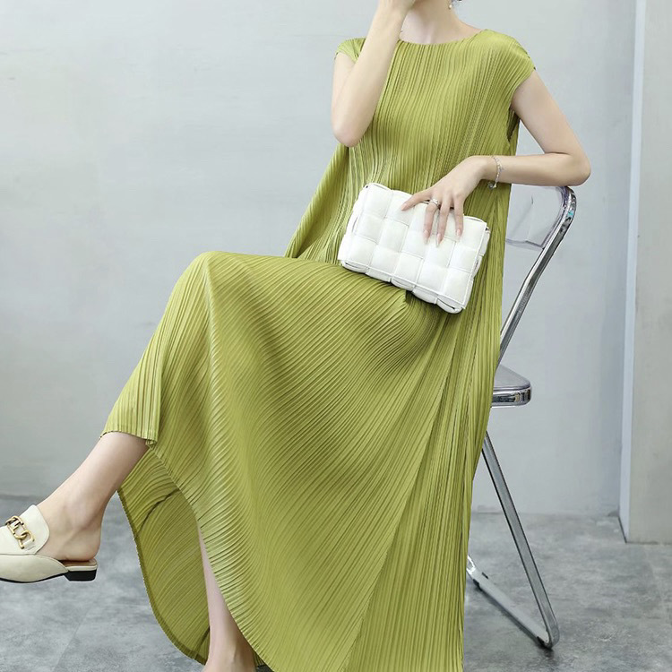 夏の新しいスタイルのノースリーブプリーツスカート、女性用の気質ラウンドネック、女性用のゆったりとしたスリムでカジュアルで快適なミドル丈ドレス
