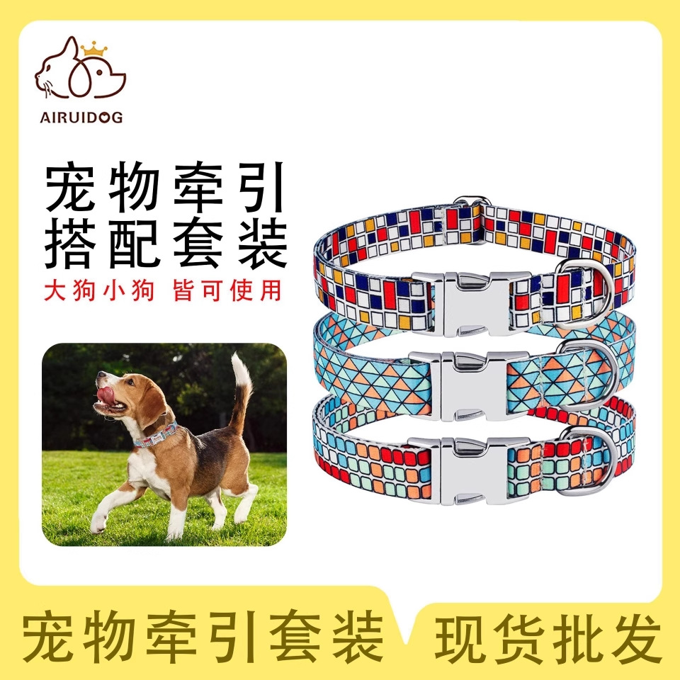 越境人気プリントペット首輪犬首輪犬リードセットアマゾン人気リード組み合わせ