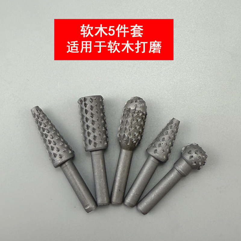 5件套旋转钢锉异形锉 压纹钢锉电磨打磨头 锉软金属木工工具套装