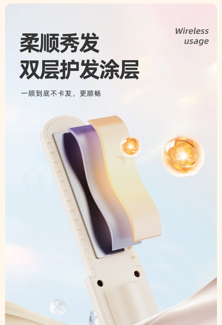 亚马逊专供无线新款充电直发器便携式护发不伤发造型梳子家用直发