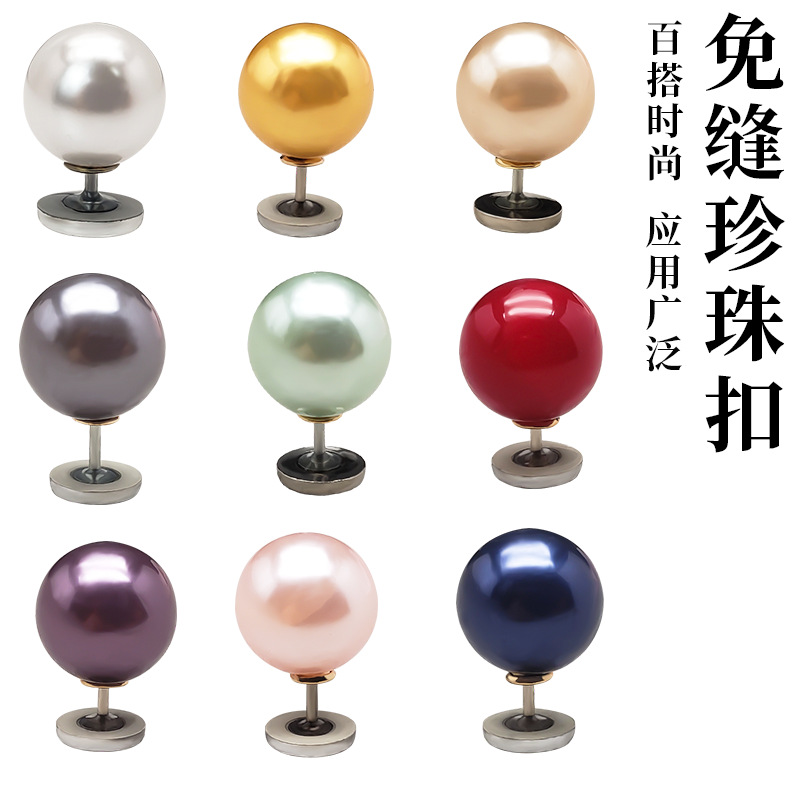 彩色珍珠纽扣防走光雪纺衬衫扣开衫西服连衣裙丝巾免缝平底插针