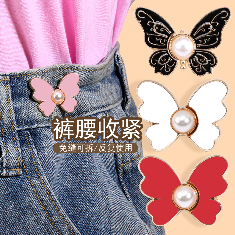蝶のウエストバックル、取り外し可能な釘不要、縫い目不要のウエストボタン、ジーンズのウエストを大きく小さくするウエスト縮小ツール