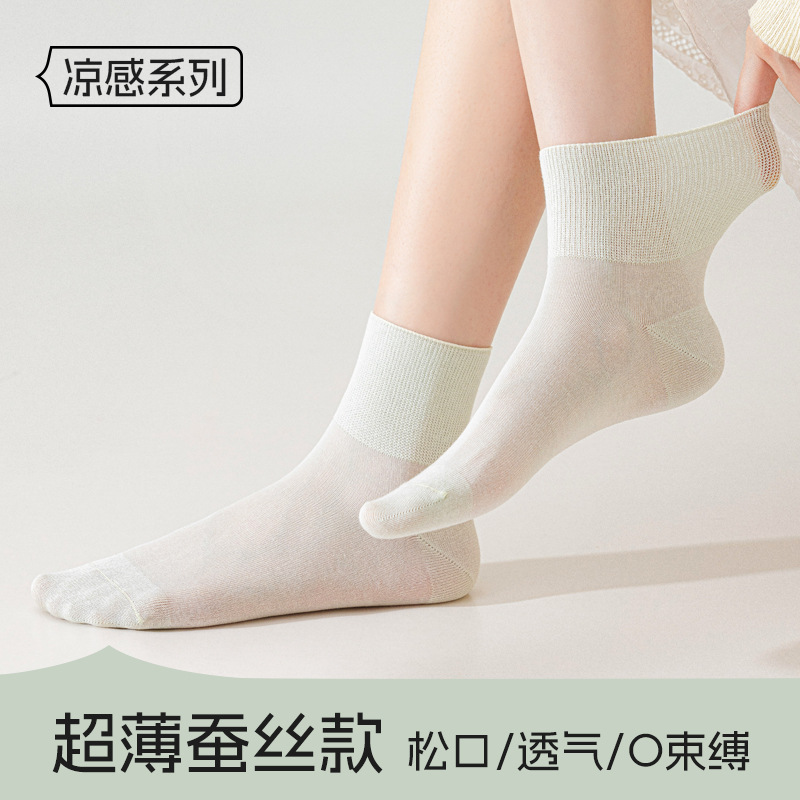 マルベリーシルクルーズソックス レディース 夏用 薄手ミッドカーフソックス 広口ボンレス産後ソックス 消臭吸汗ストッキング 女性用