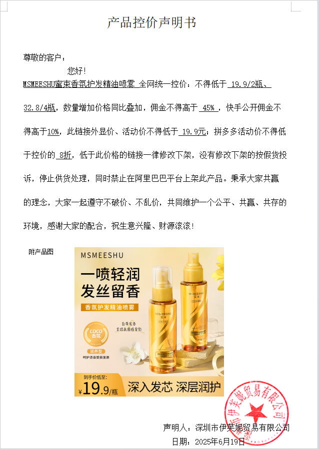 产品名称 MSMEESHU蜜束香氛护发精油喷雾