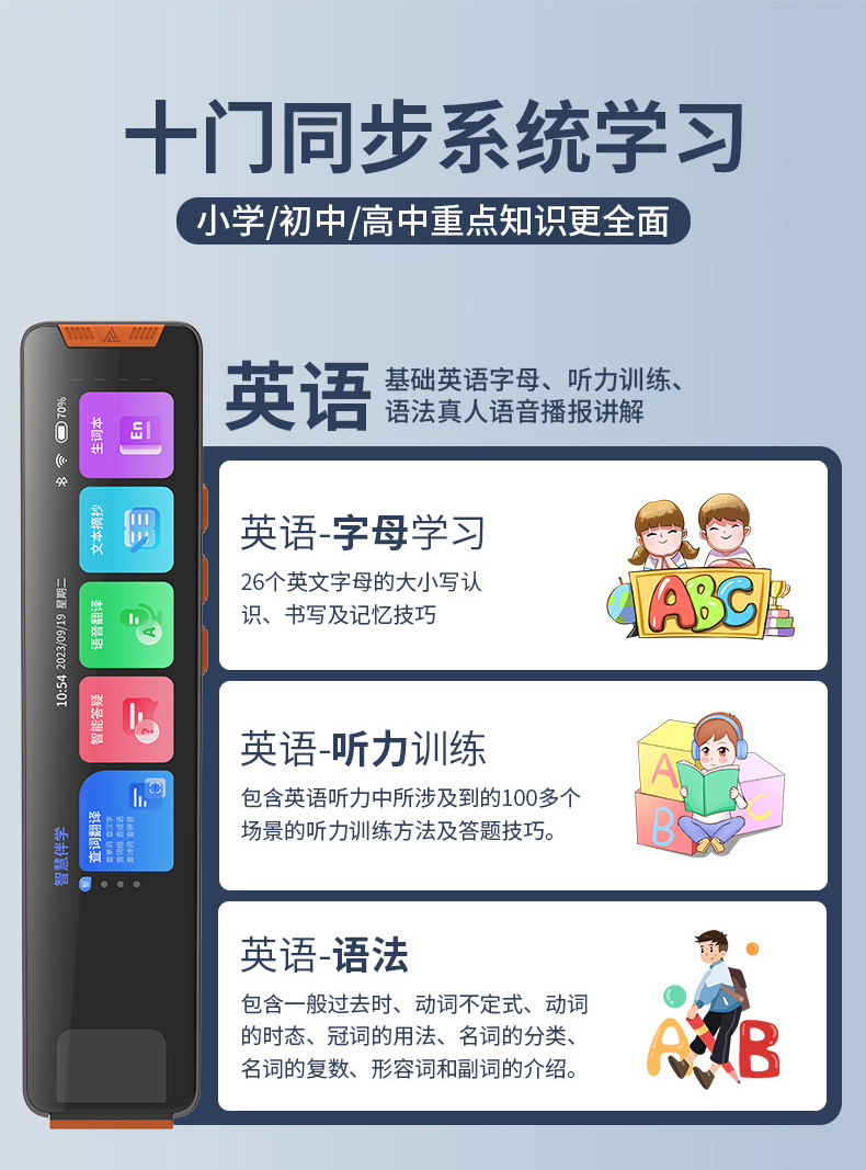 読書ペン、小学生向け英語、一般中学生、高校生学習成果物、スキャンペン、総合同期コース、単語翻訳