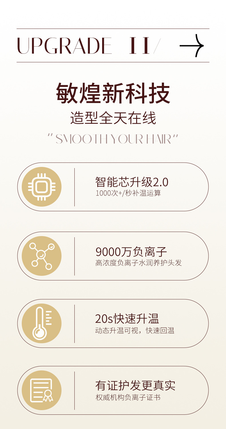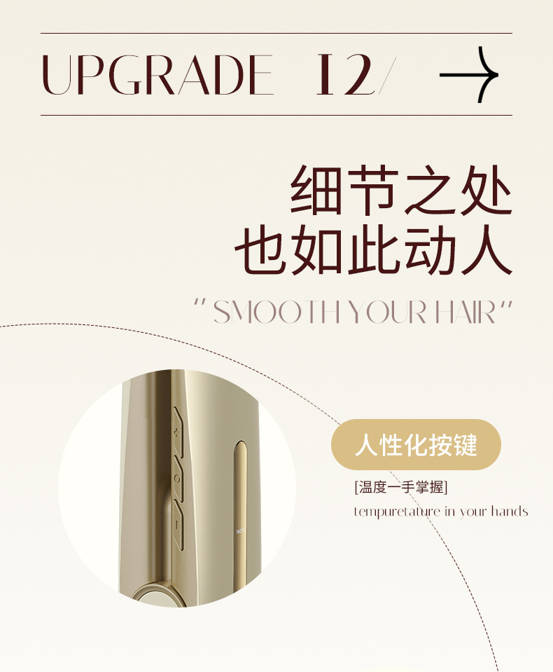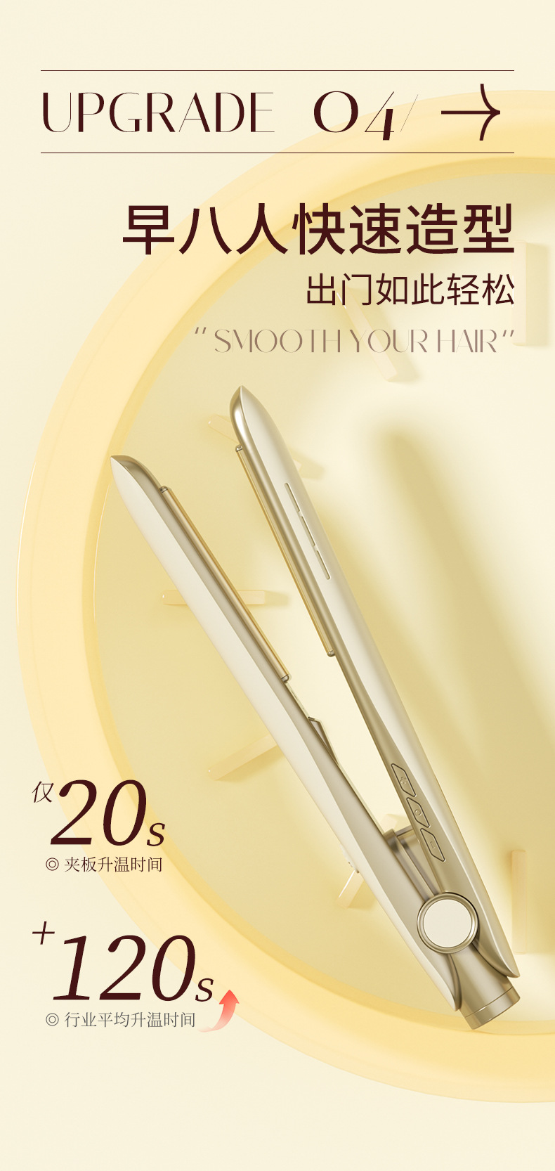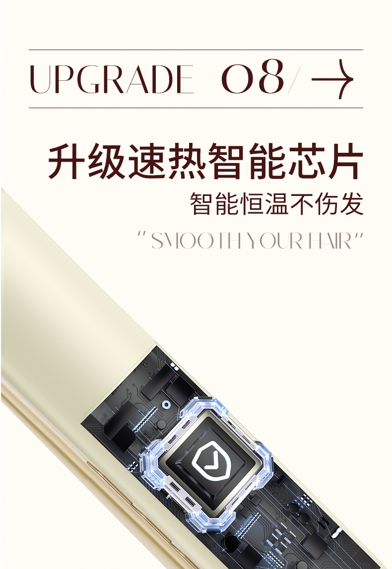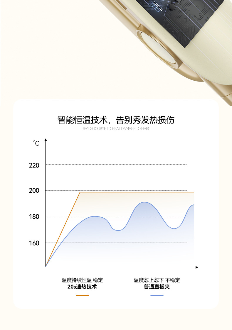 温度調節可能、火傷防止設計、急速加熱、マイナスイオンで髪を傷めません。
