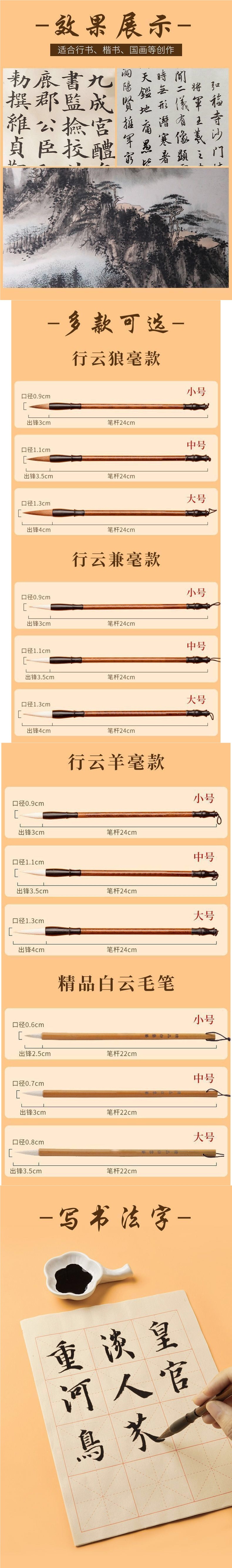 毛笔狼毫兼毫大白云中楷小楷羊毫学生书法国画初学者入门练字套装