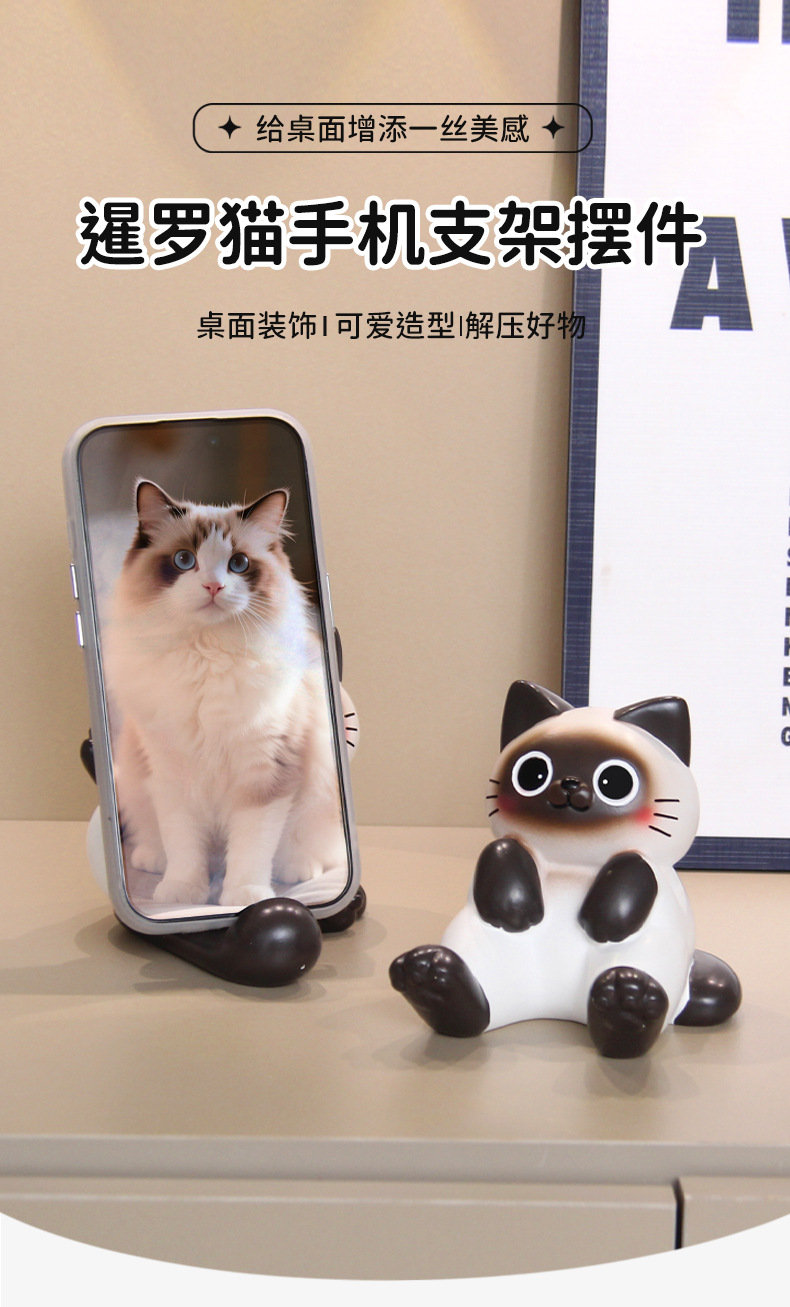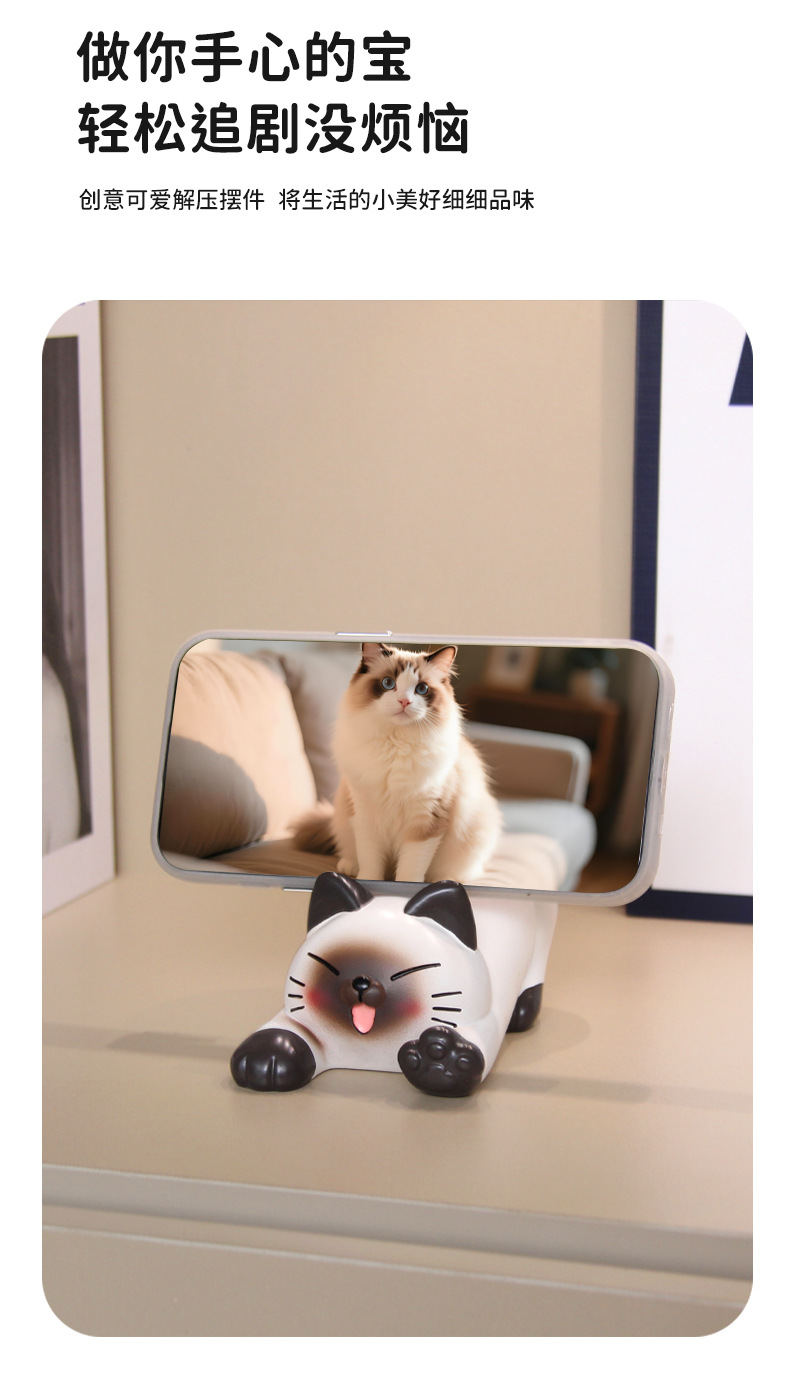 かわいいシャム猫携帯電話ホルダークリエイティブオフィスワークステーショングッズデスクトップ装飾装飾品女の子の誕生日プレゼント
