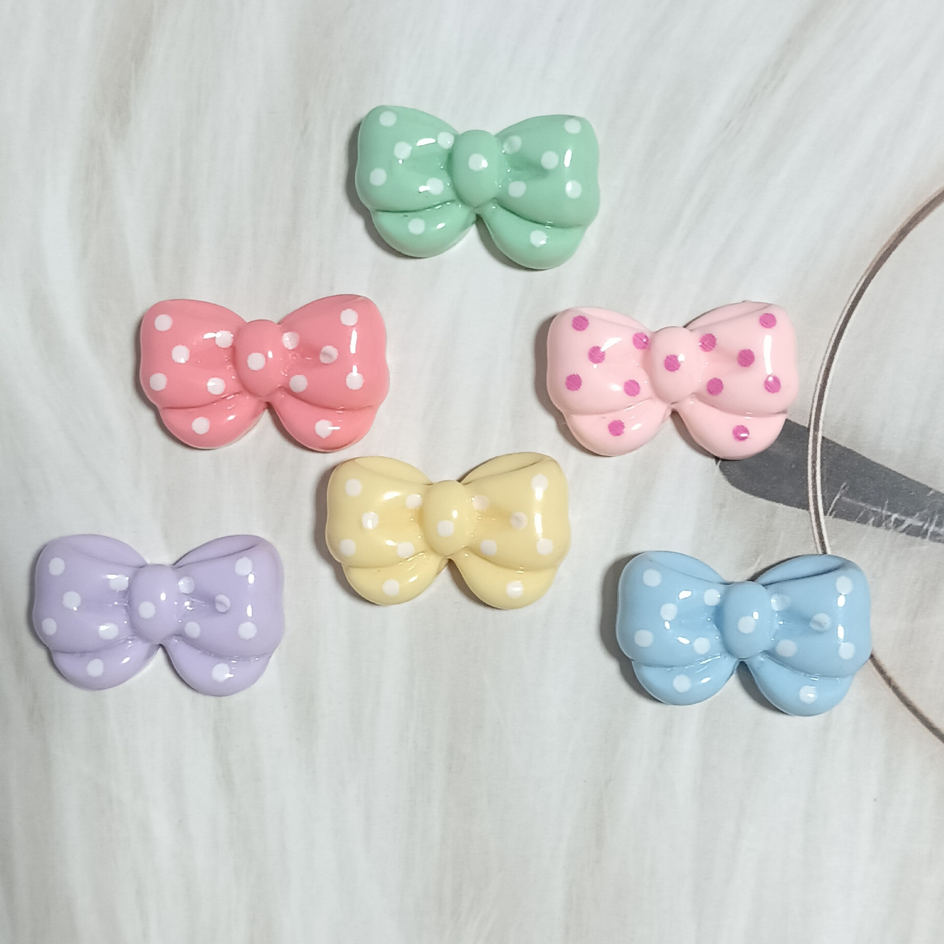 新款可爱糖果色波点蝴蝶结diy手工材料头饰配件奶油胶手机壳领结