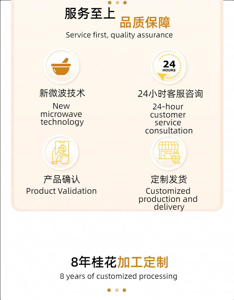 梱包仕様 6A レア電子レンジ金木犀(明るい花),5A厳選マイクロ波金木犀(黒い花のない金色),4A 厳選電子レンジ金木犀(黒花少量でコストパフォーマンス抜群),3A カラーソート電子レンジ ゴールデン シナモン (小さなブティックの花),2A マイクロ波金木犀(お手頃価格の醸造、飲料、抽出、粉砕),壊れた花、花のつぶやき