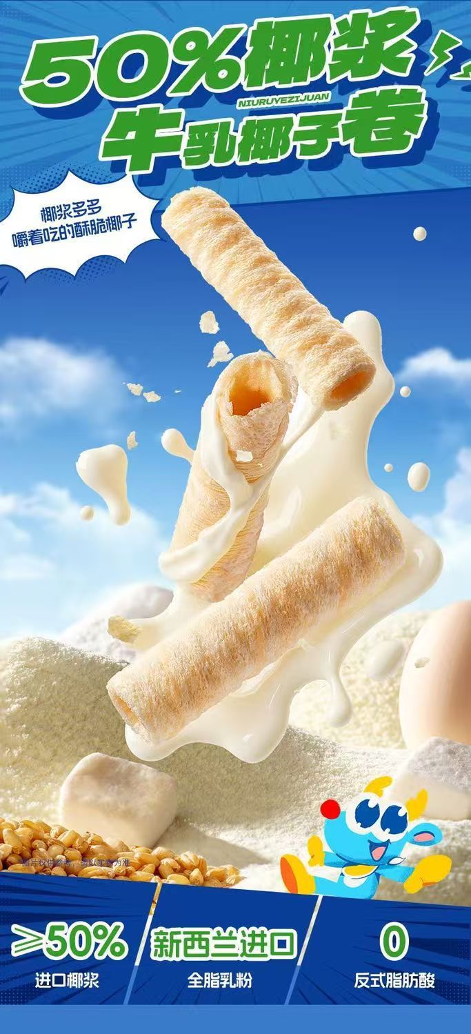 リトルディア ランラン PLUS ミルクココナッツロール 100g 全粉乳卵ビスケット クリスピーペストリービスケット スナック