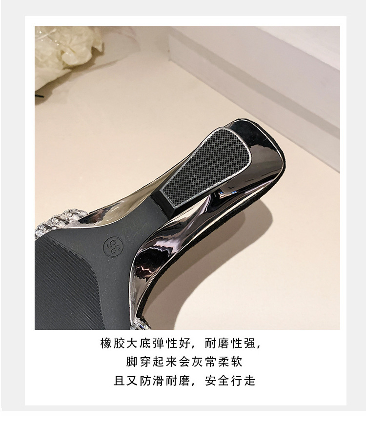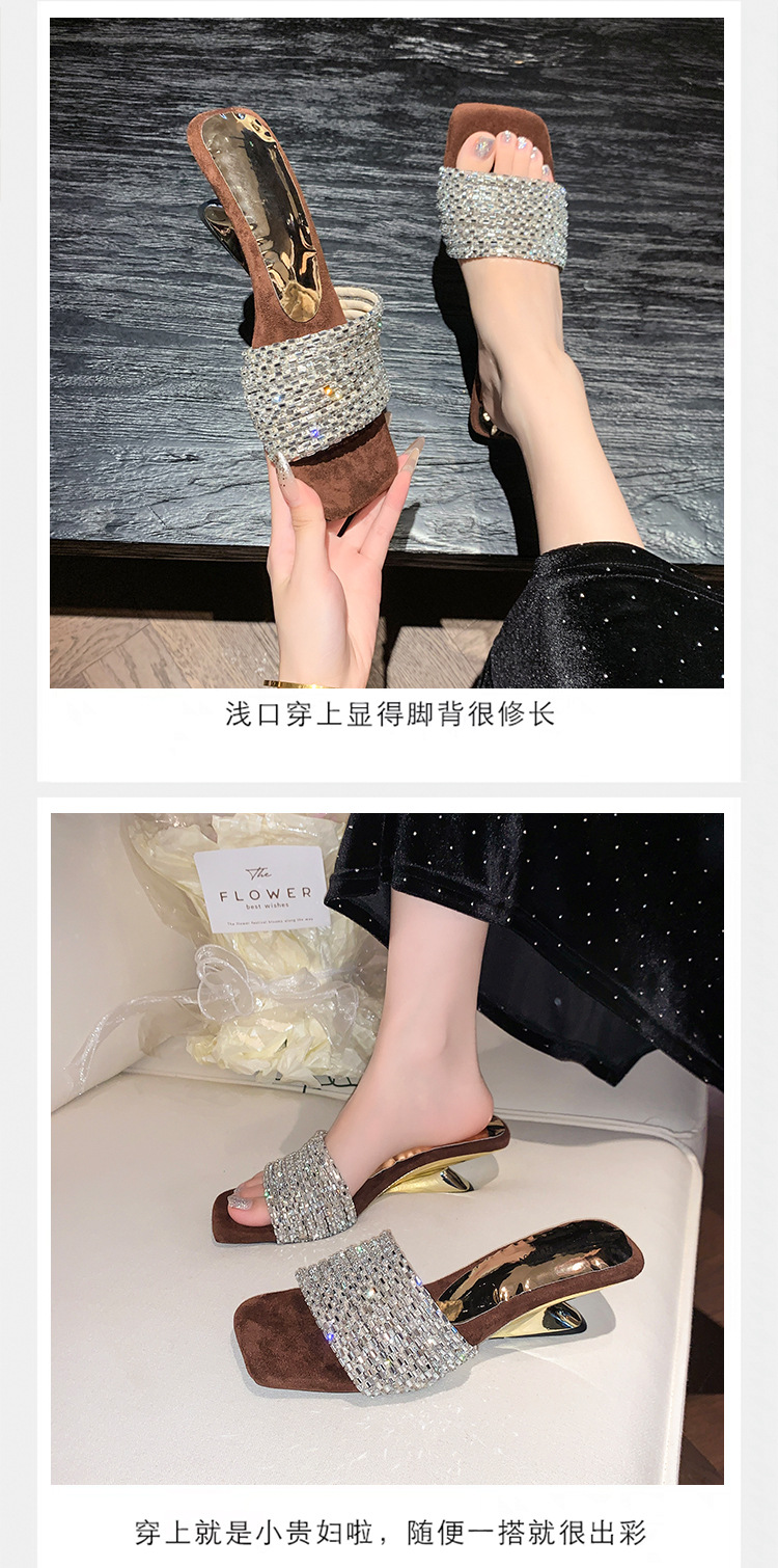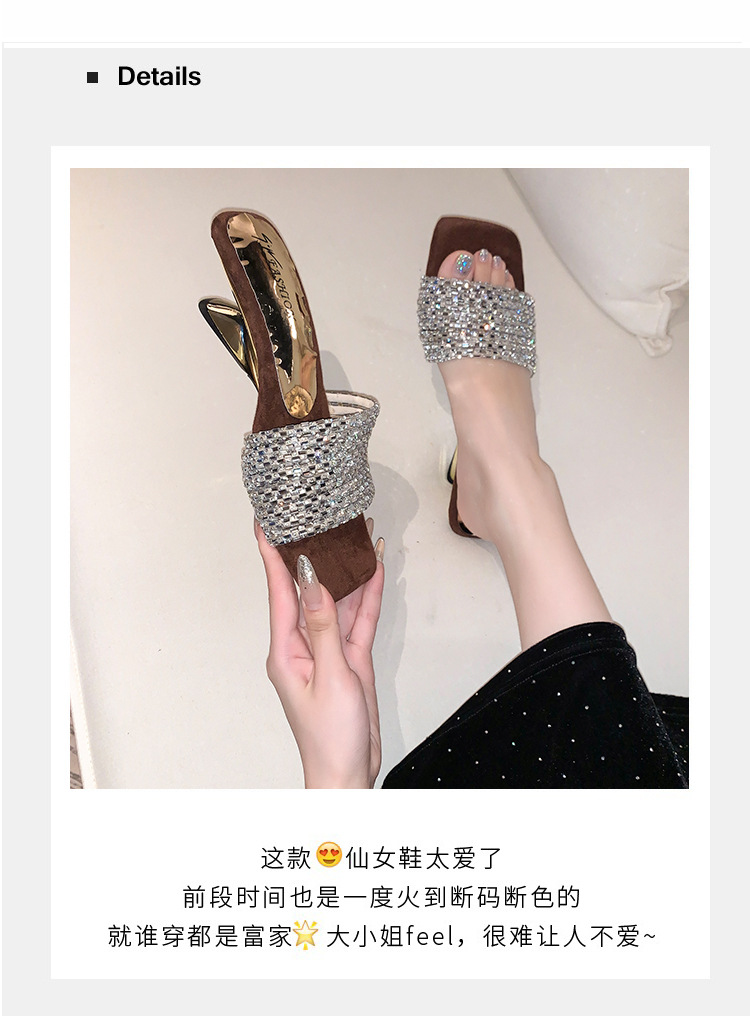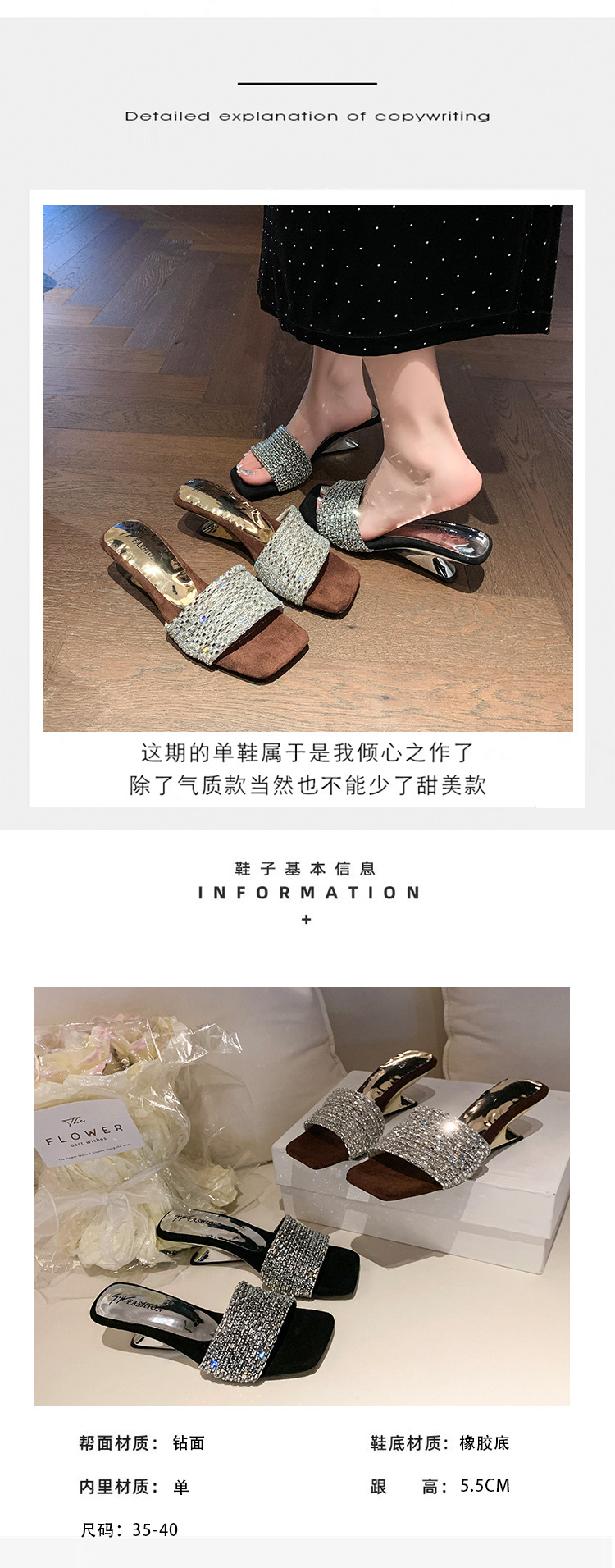 2025 新しいレディースサンダルとスリッパファッションラインストーンスクエアヒールミッドヒールオープントゥ大型スリッパ外国貿易卸売