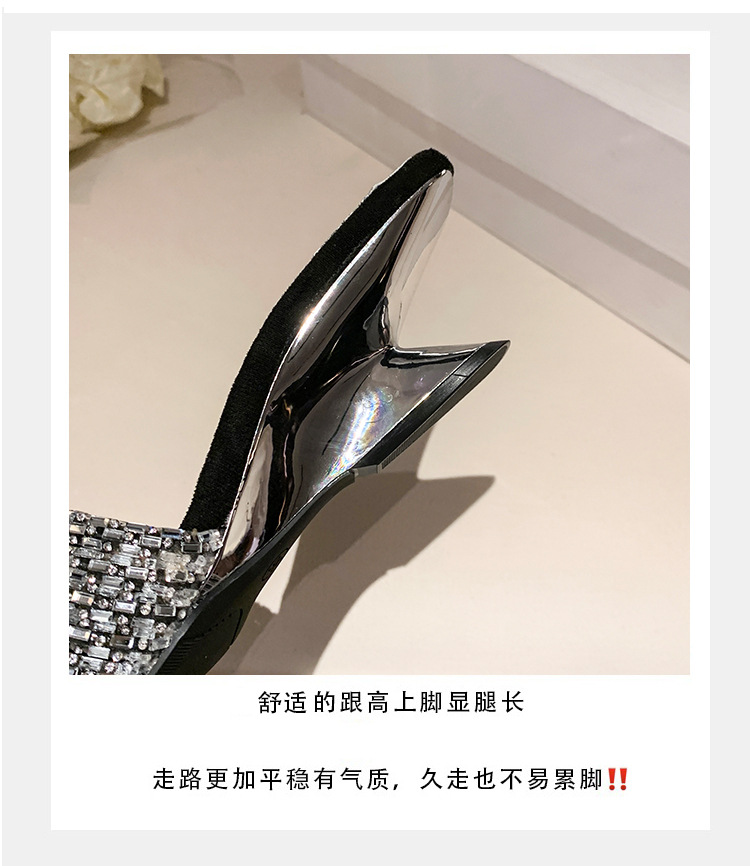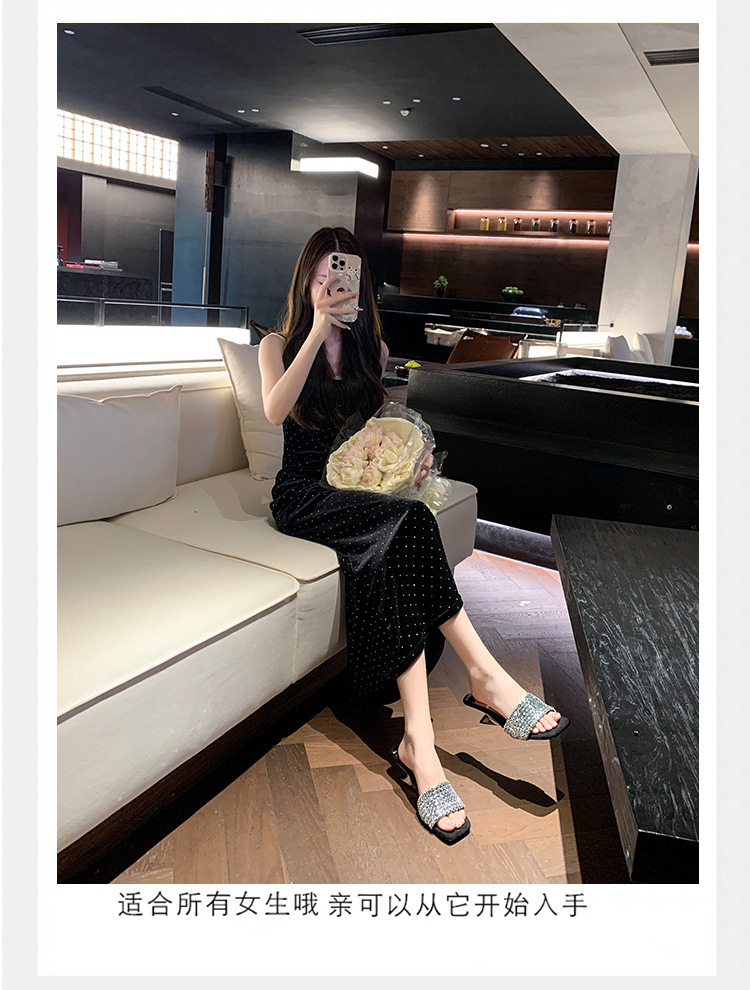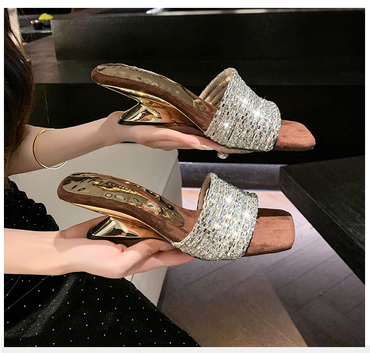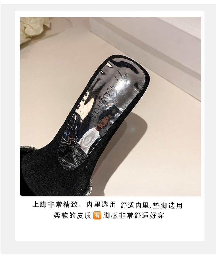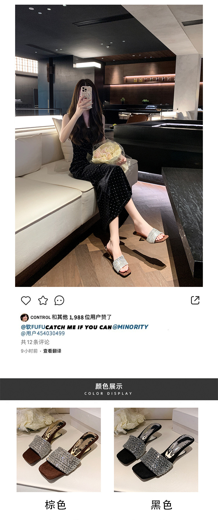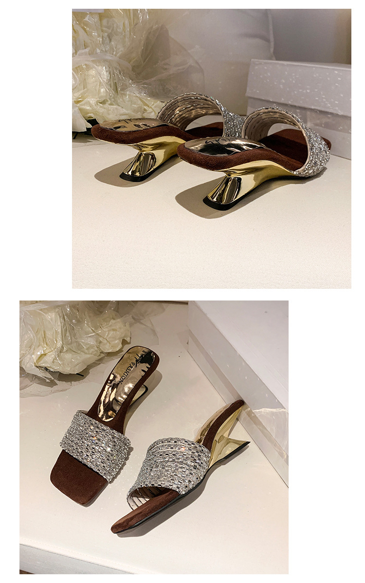 2025 新しいレディースサンダルとスリッパファッションラインストーンスクエアヒールミッドヒールオープントゥ大型スリッパ外国貿易卸売