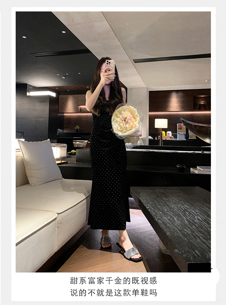女性が夏に着用できるスカートとハイヒールのサンダルを備えたラインストーンの気質 2025 新しいフランススタイルの美しいビーチサンダル