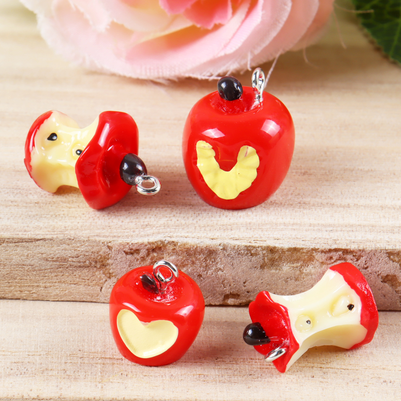 跨境热卖可爱迷你苹果树脂吊坠DIY苹果核耳环项链钥匙扣配件饰品
