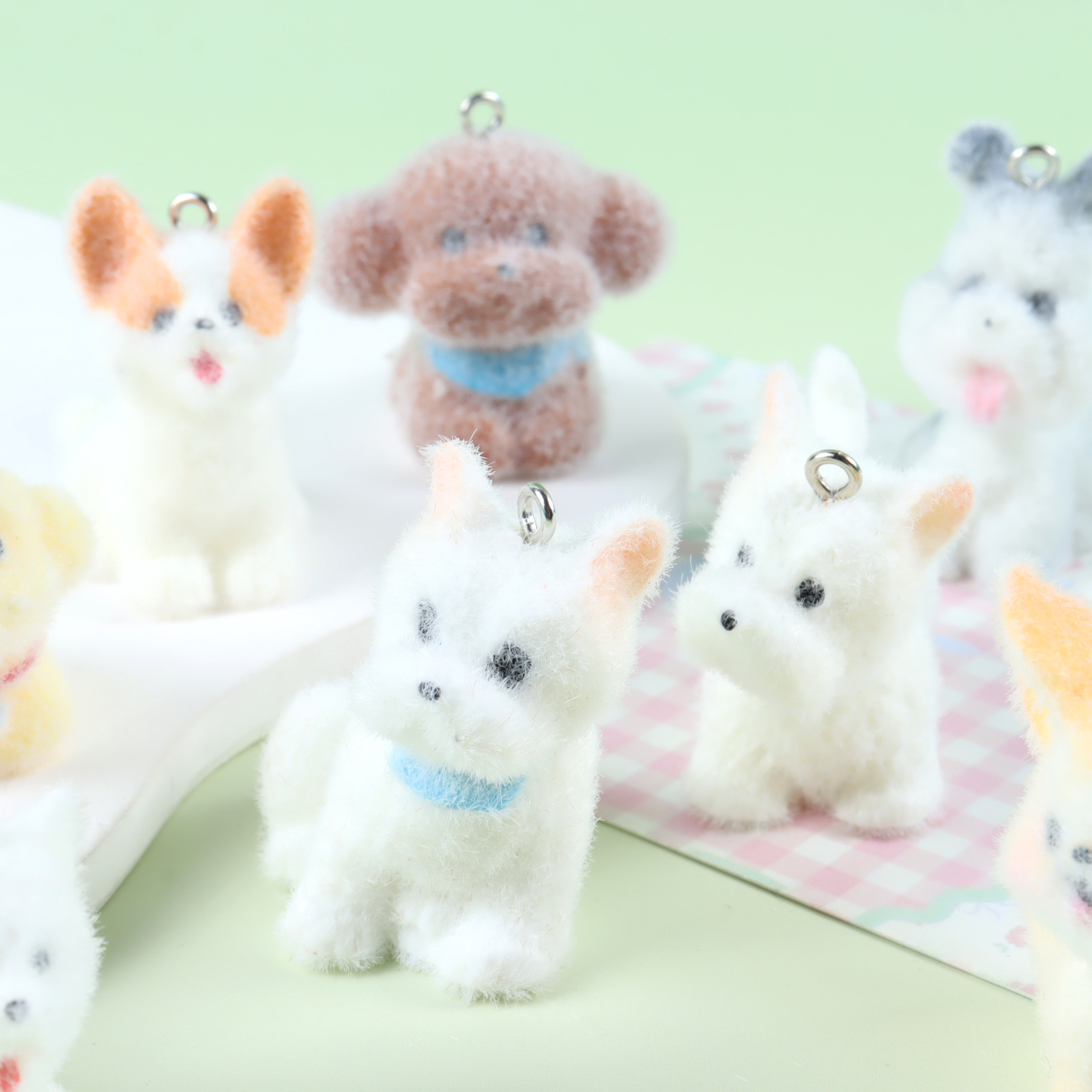 新品植绒树脂创意可爱仿真小柯基泰迪车载钥匙扣包包装饰DIY挂件