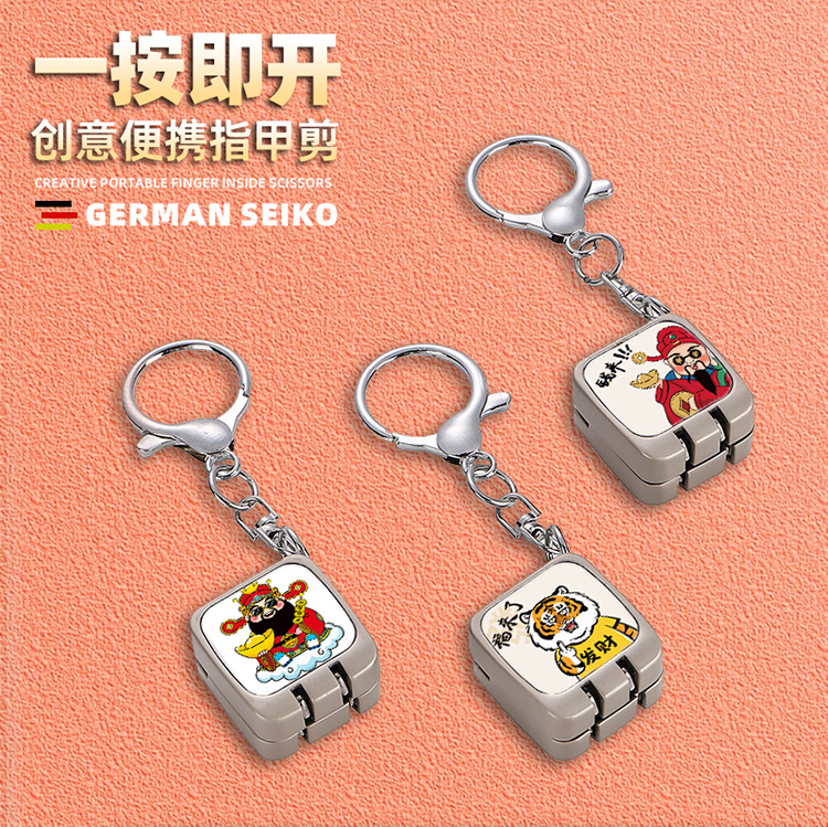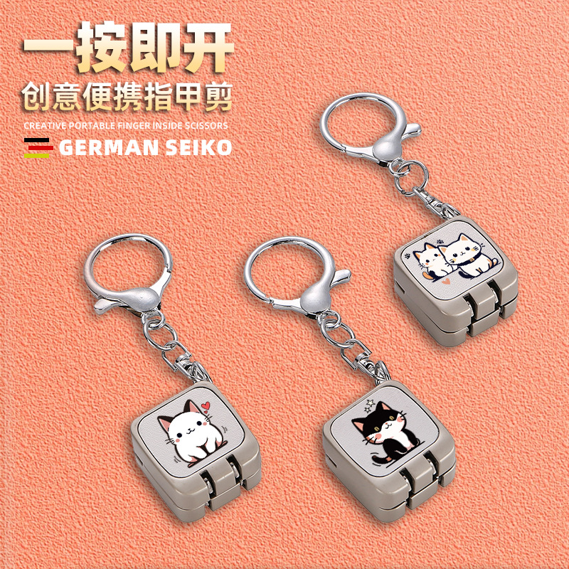卸売ギフトクリエイティブ新しいワンクリックオープンミニ折りたたみ爪切りチェーン爪切りキーホルダーペンダントギフト