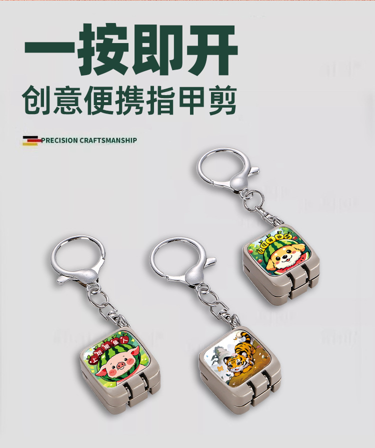 批发创意迷你指甲刀便携折叠钥匙扣挂件一按即开指甲剪可定图案